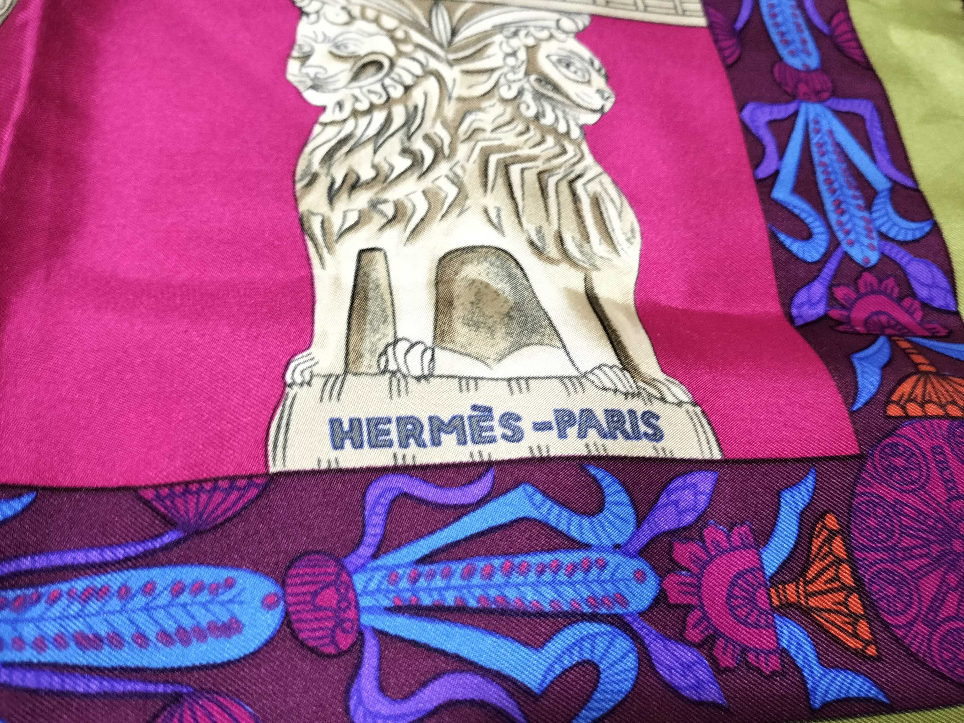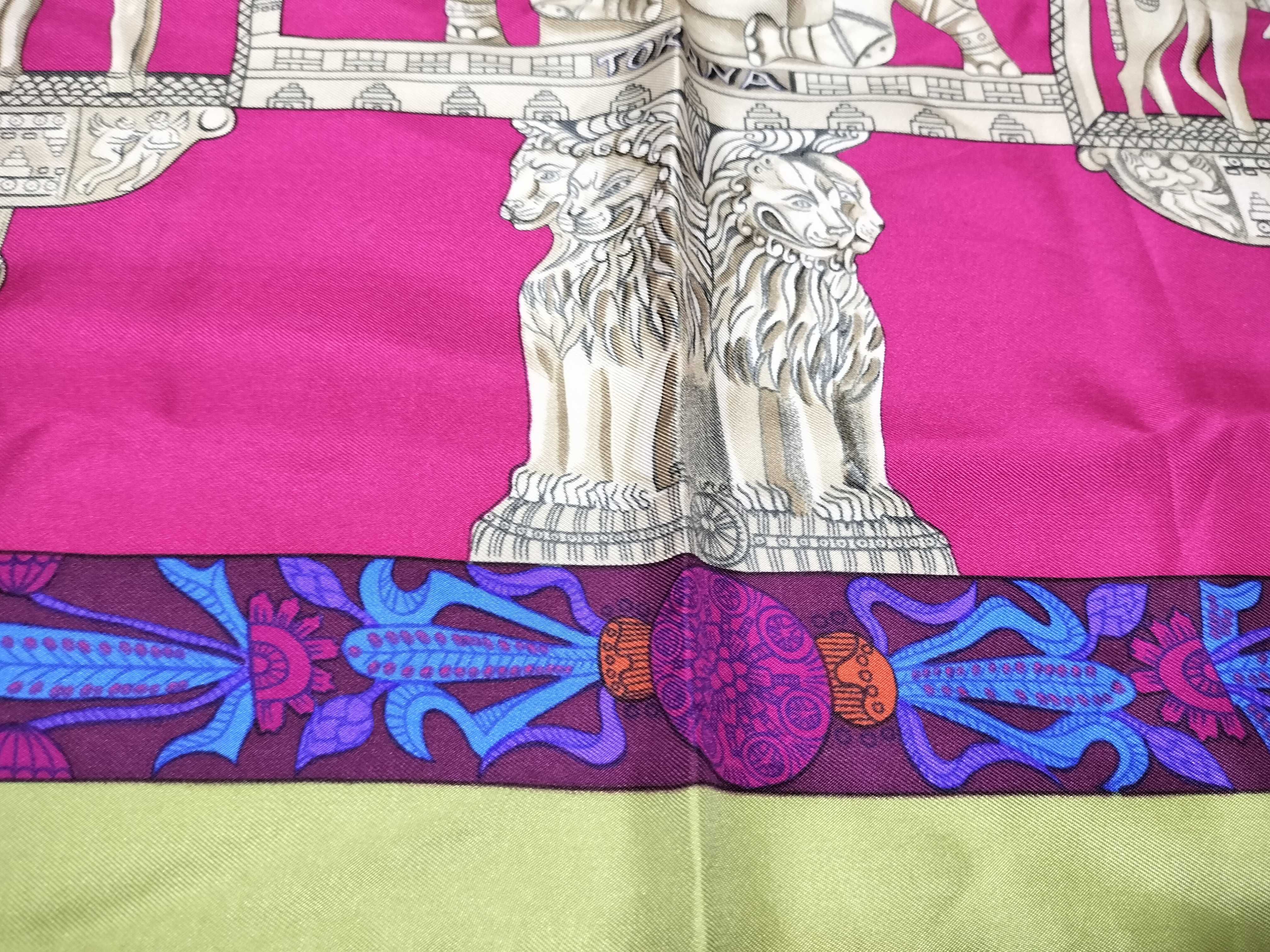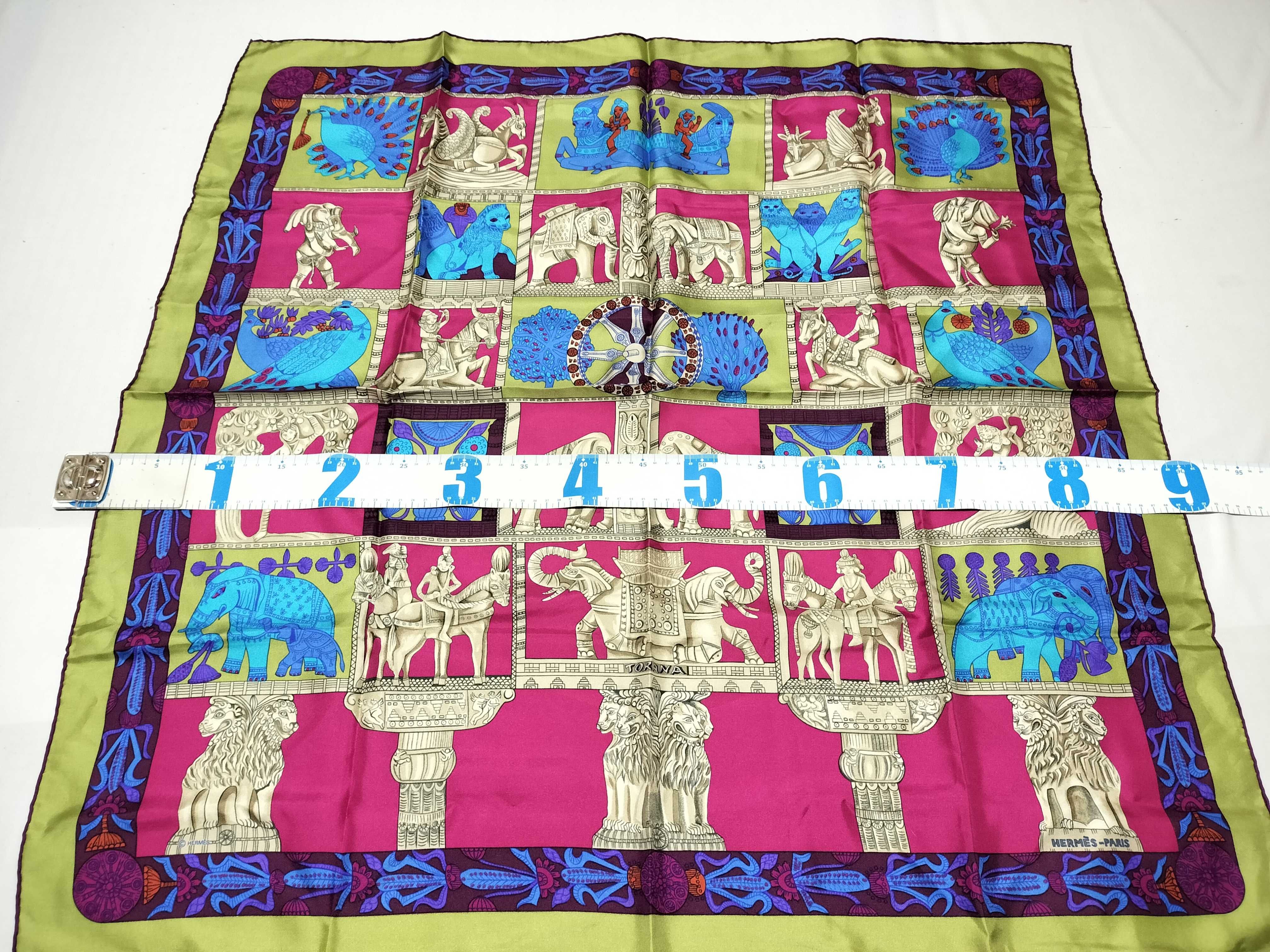 (G_0929)HERMES カレ 90 TORANA 塔門 スカーフ シルク スカーフ