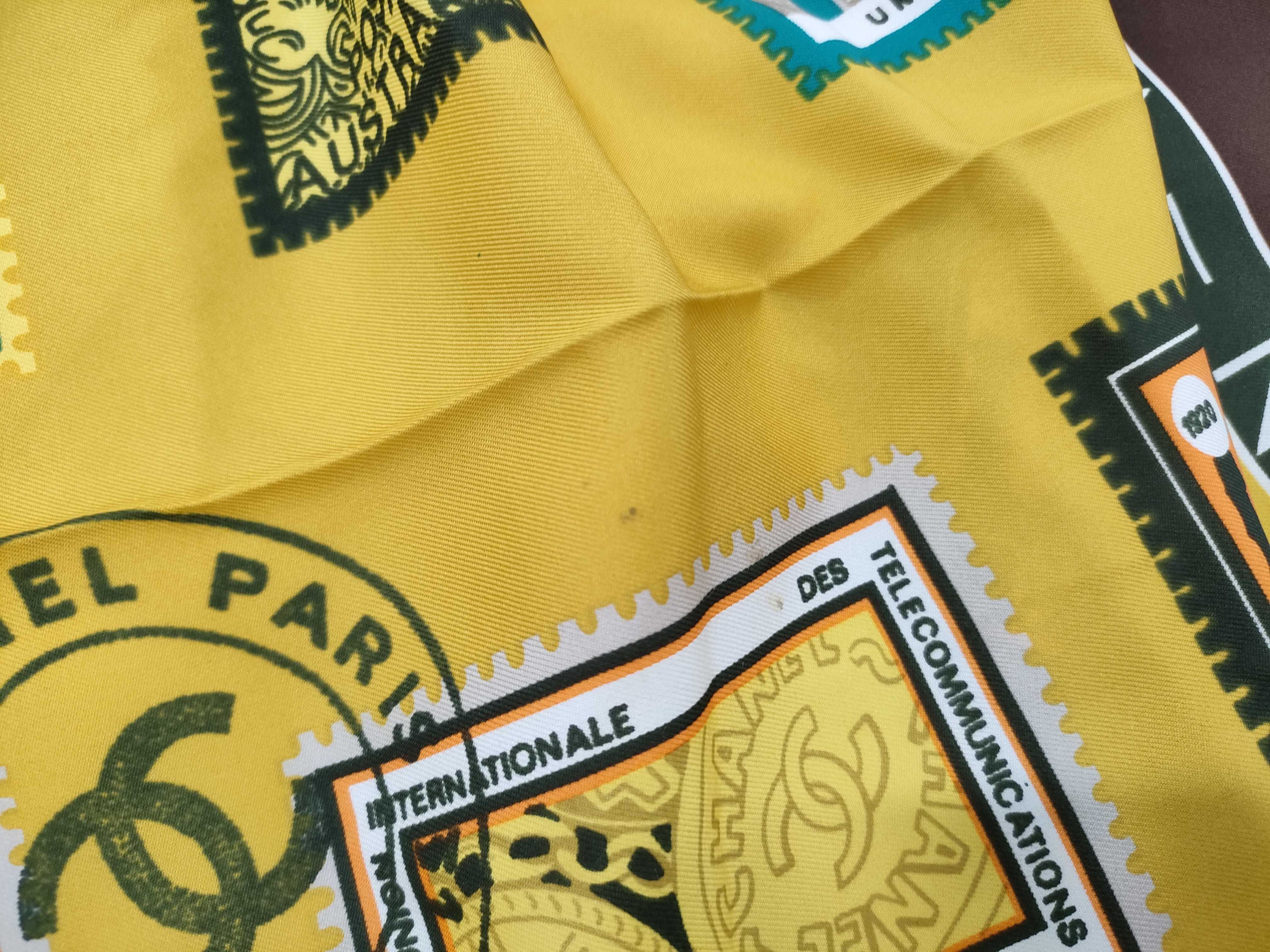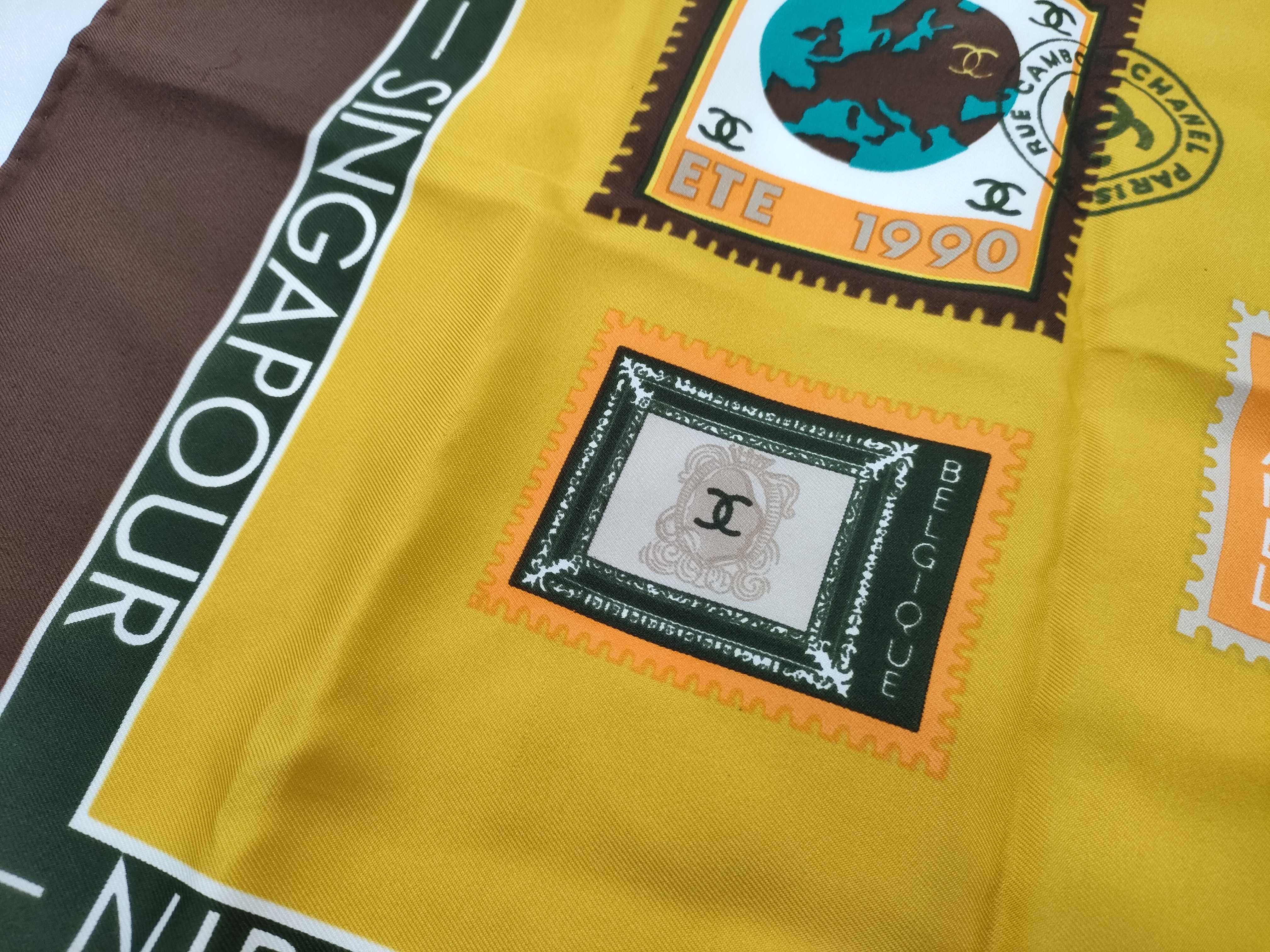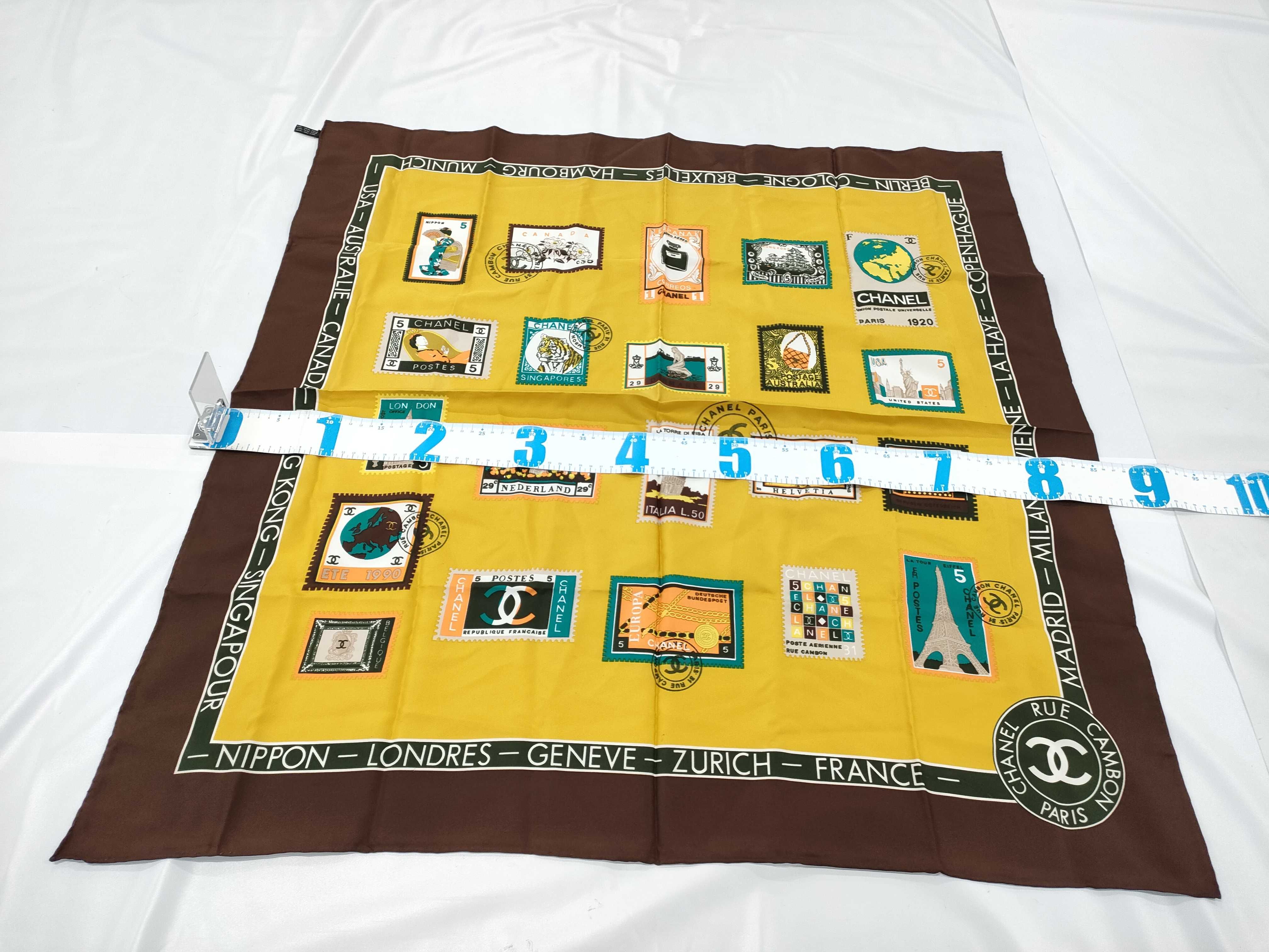 (G_1115)CHANEL シルク 切手柄 ブラウン スカーフ