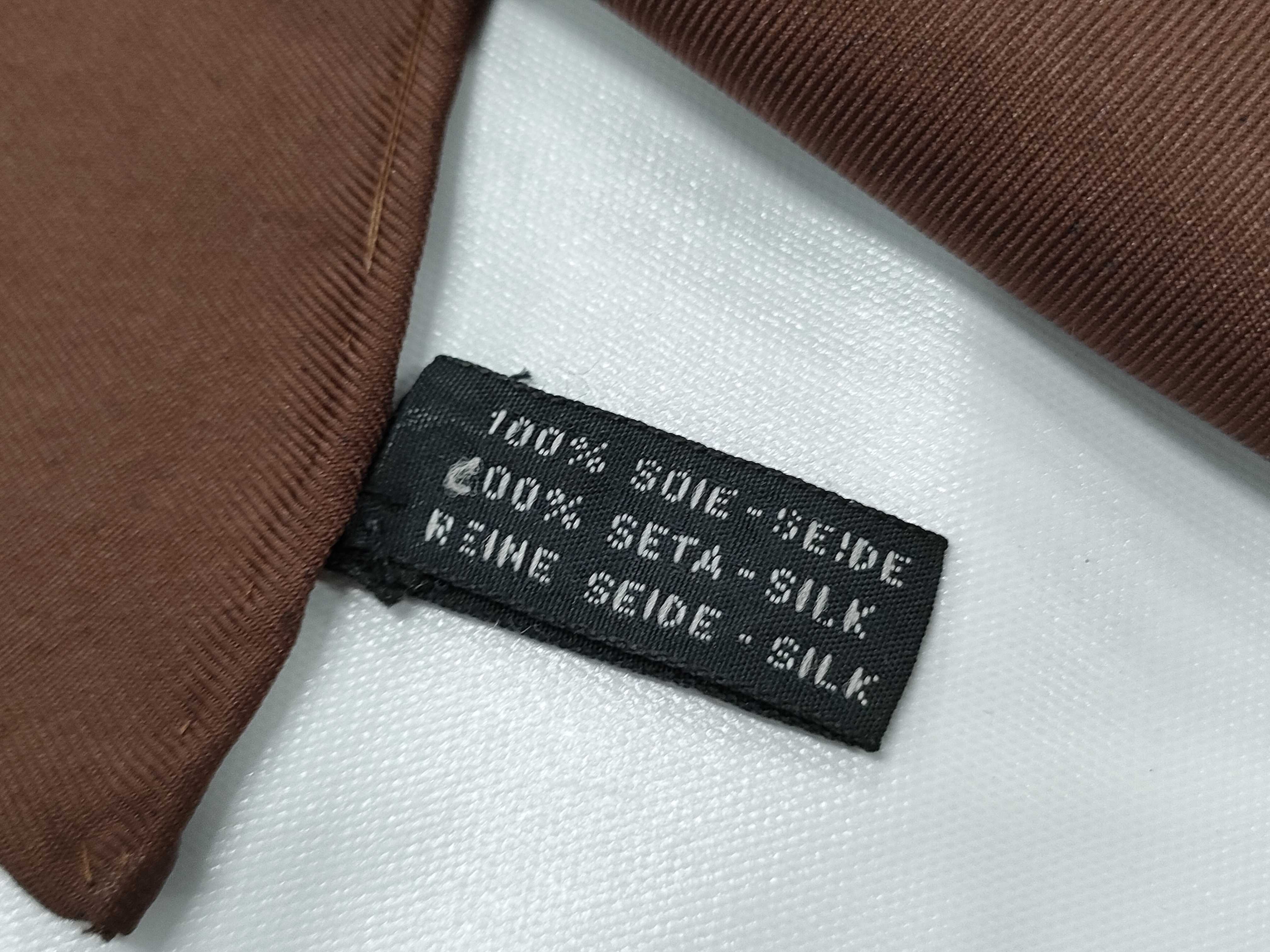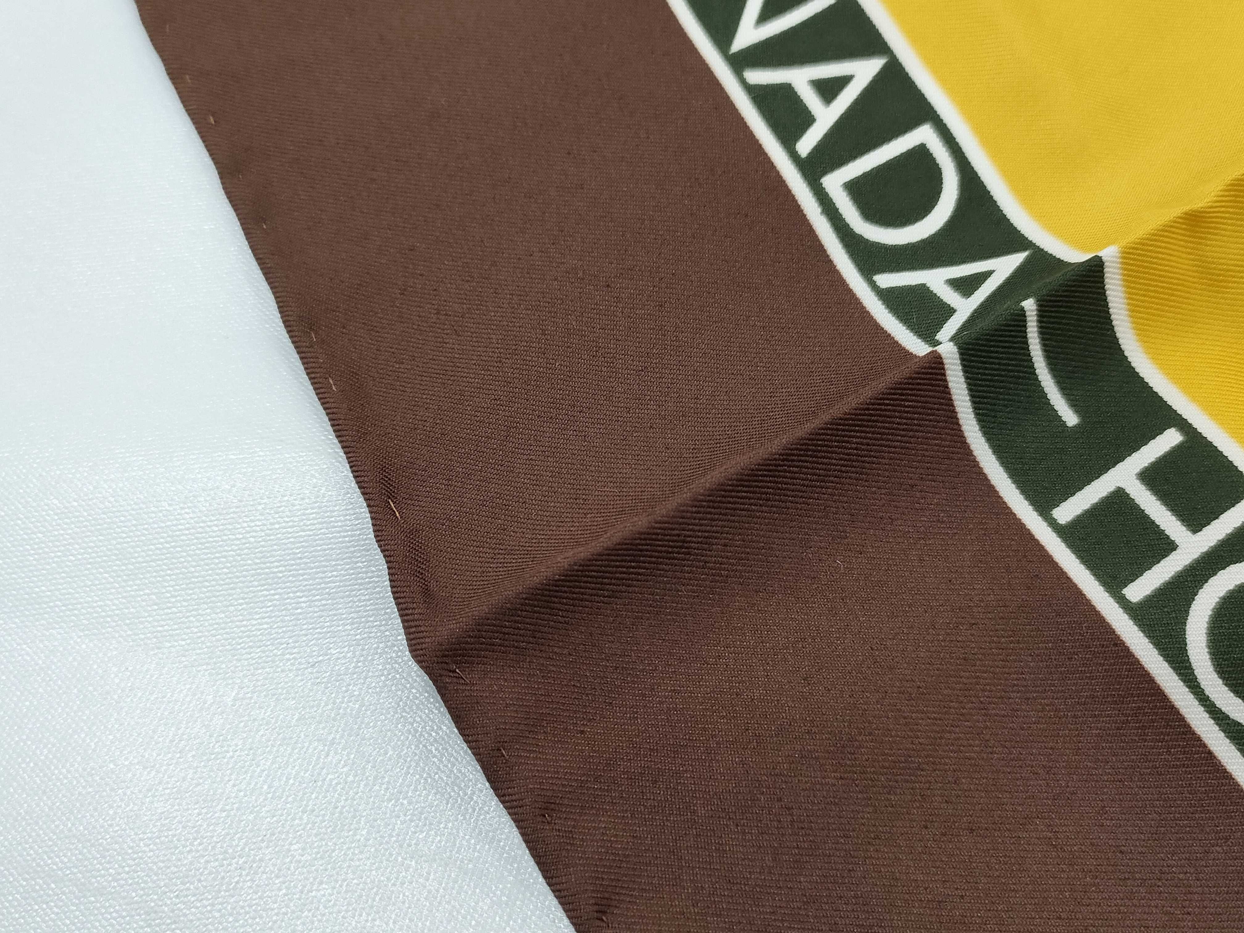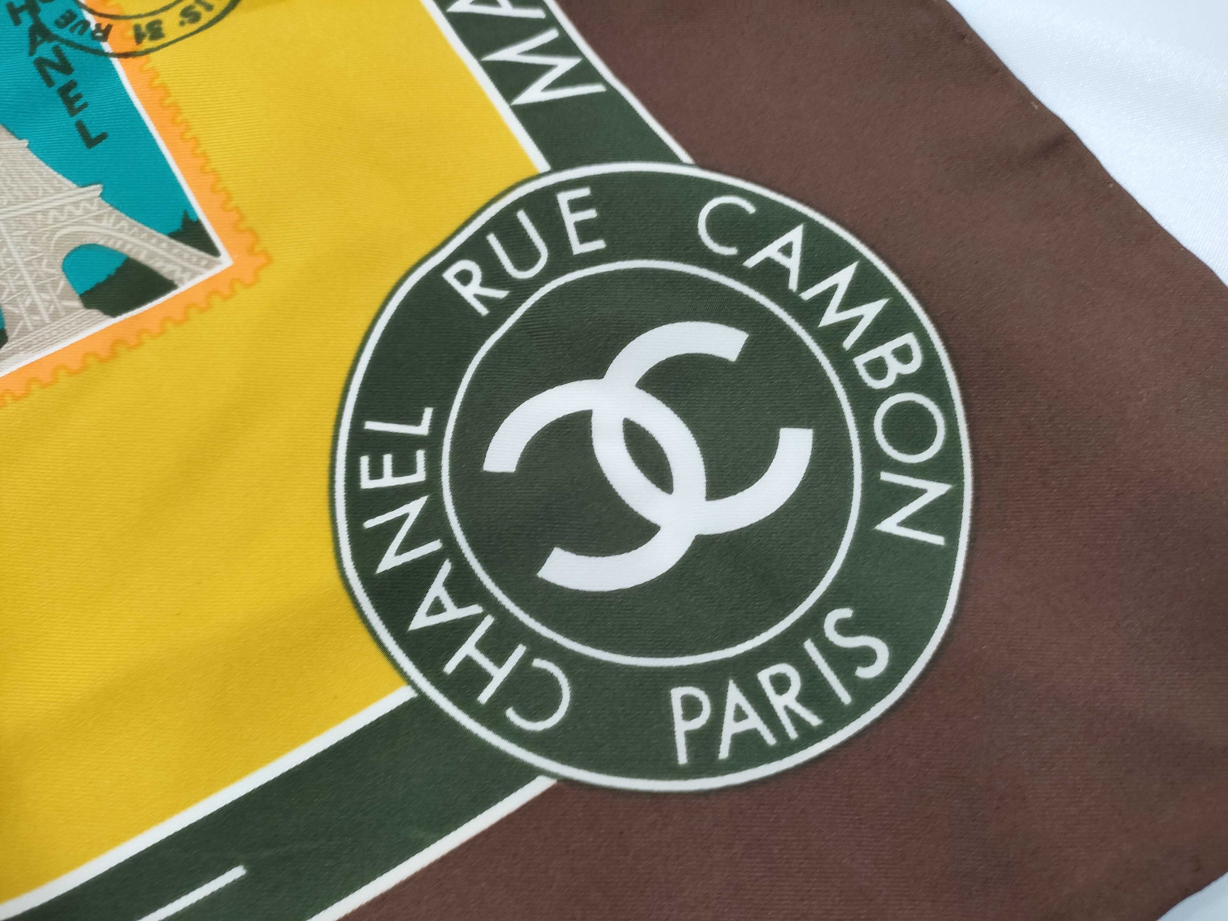 (G_1115)CHANEL シルク 切手柄 ブラウン スカーフ