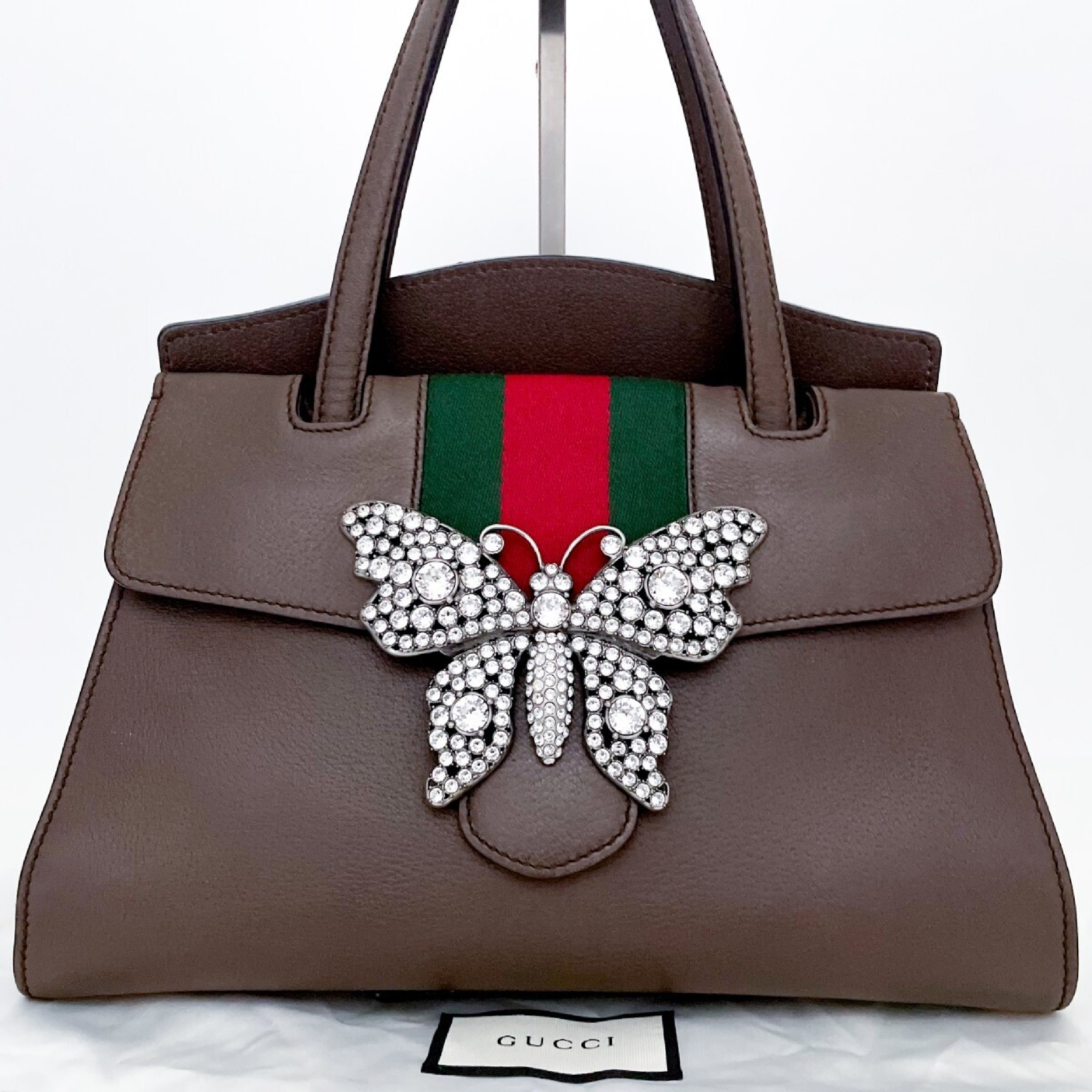 (D_0624)GUCCI グッチ 2way シェリー トートバッグ バタフライ ビジュー クリスタル ビジネス メンズ レディース レザー ハンドバッグ ショルダーバッグ
