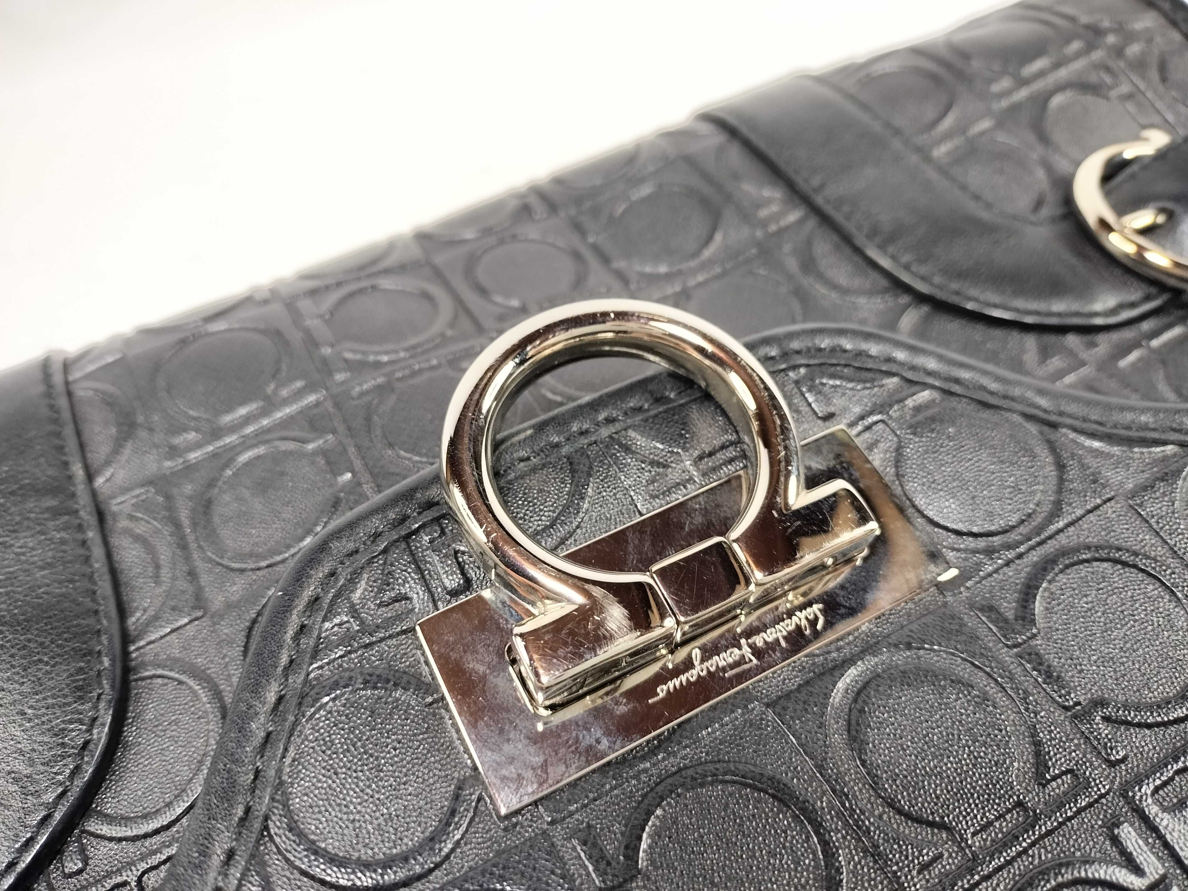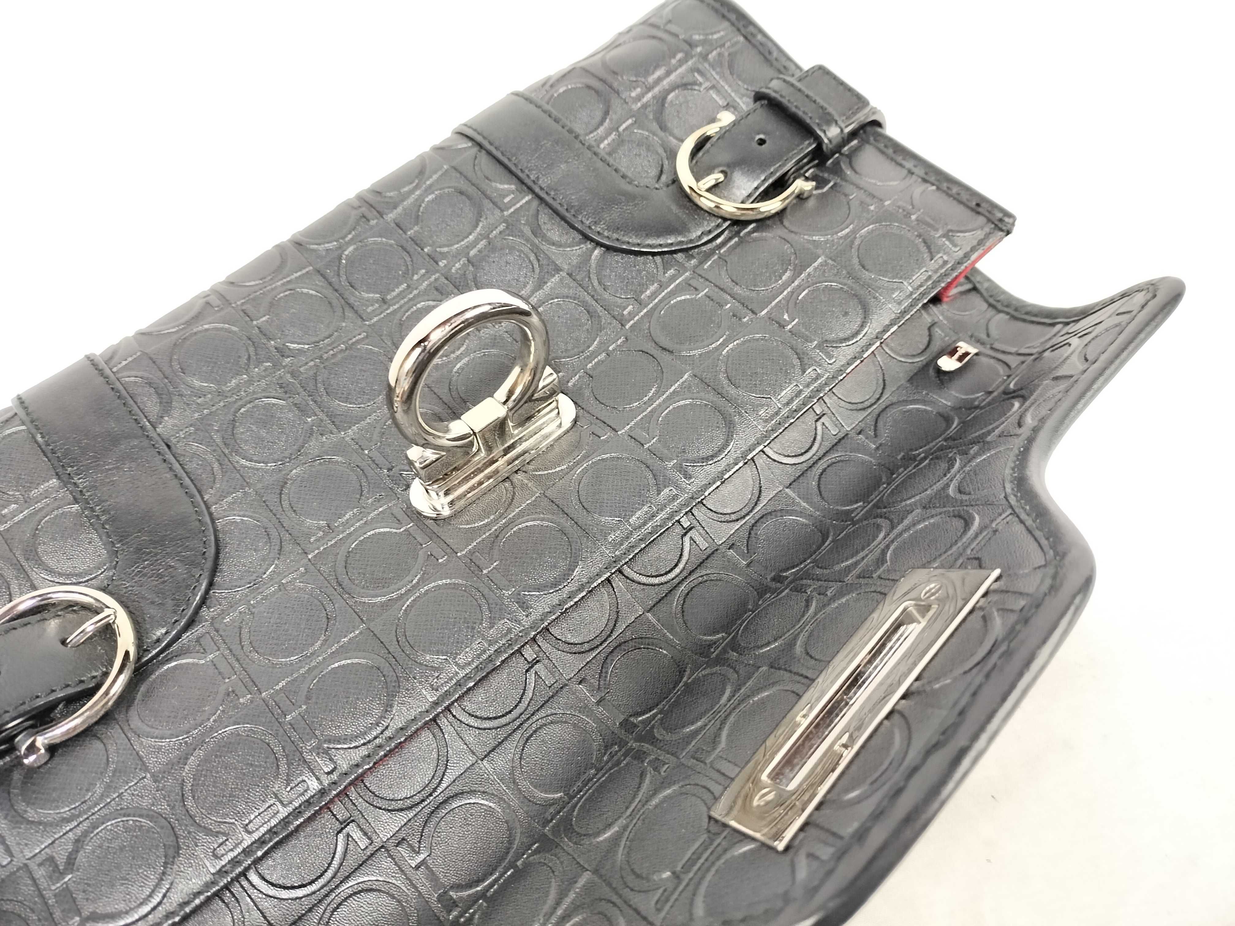 (D_0829)Salvatore Ferragamo ガンチーニ Ferragamo フェラガモ ガンチーニ レザー ブラック バッグ クラッチバッグ クラッチバッグ