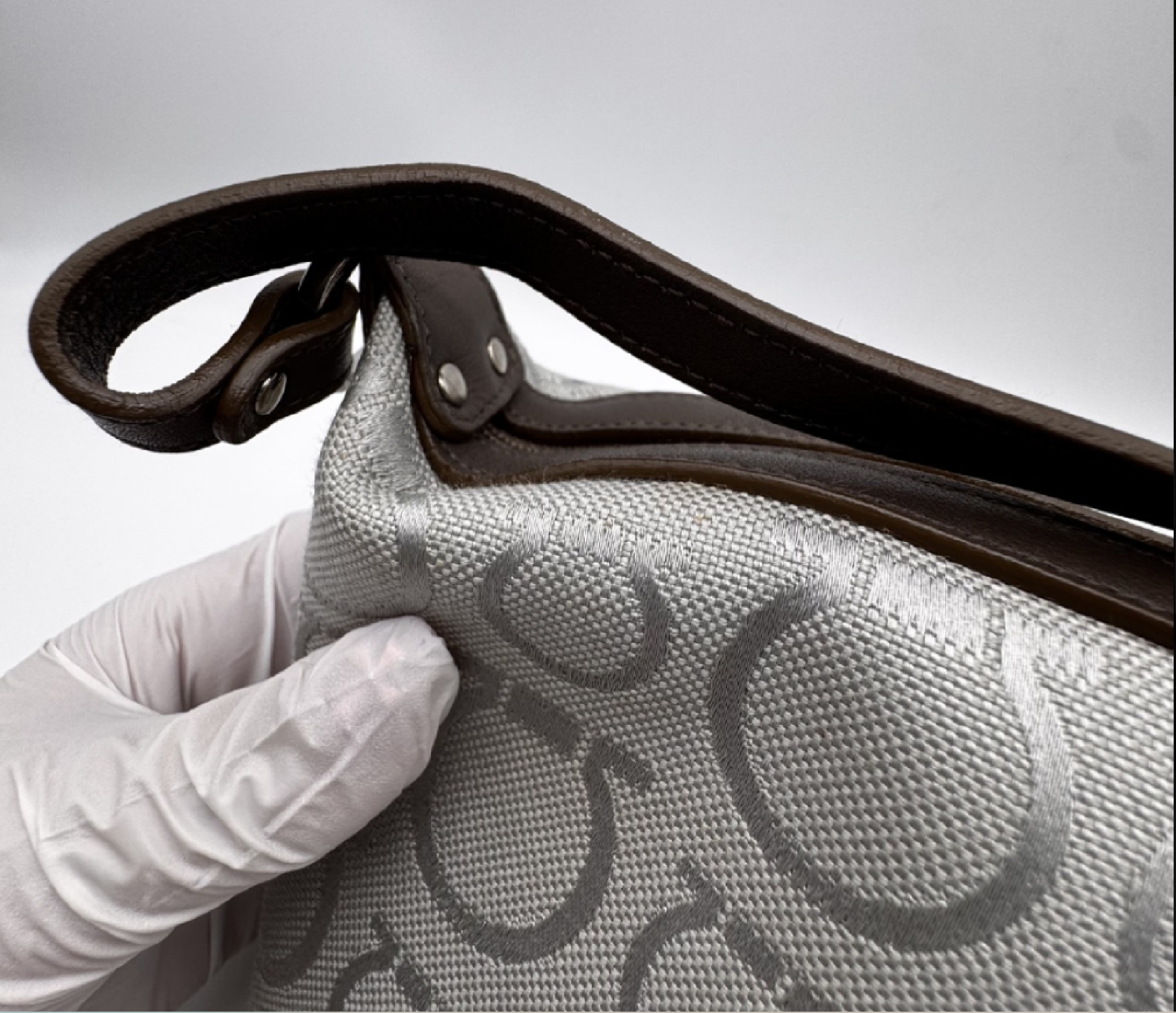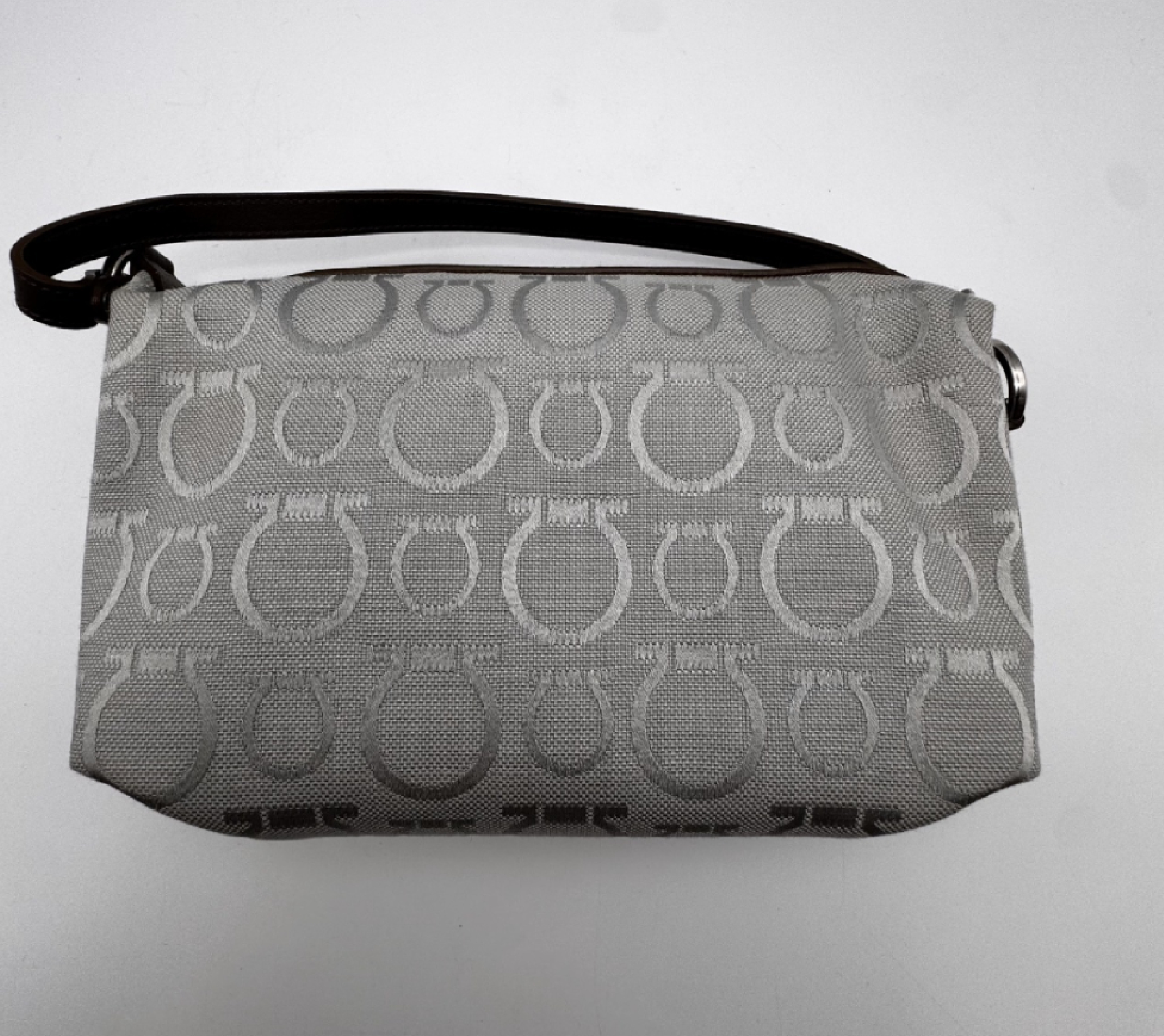 (D_0843)Salvatore Ferragamo ガンチーニ グレー系 箱あり ハンドバッグ