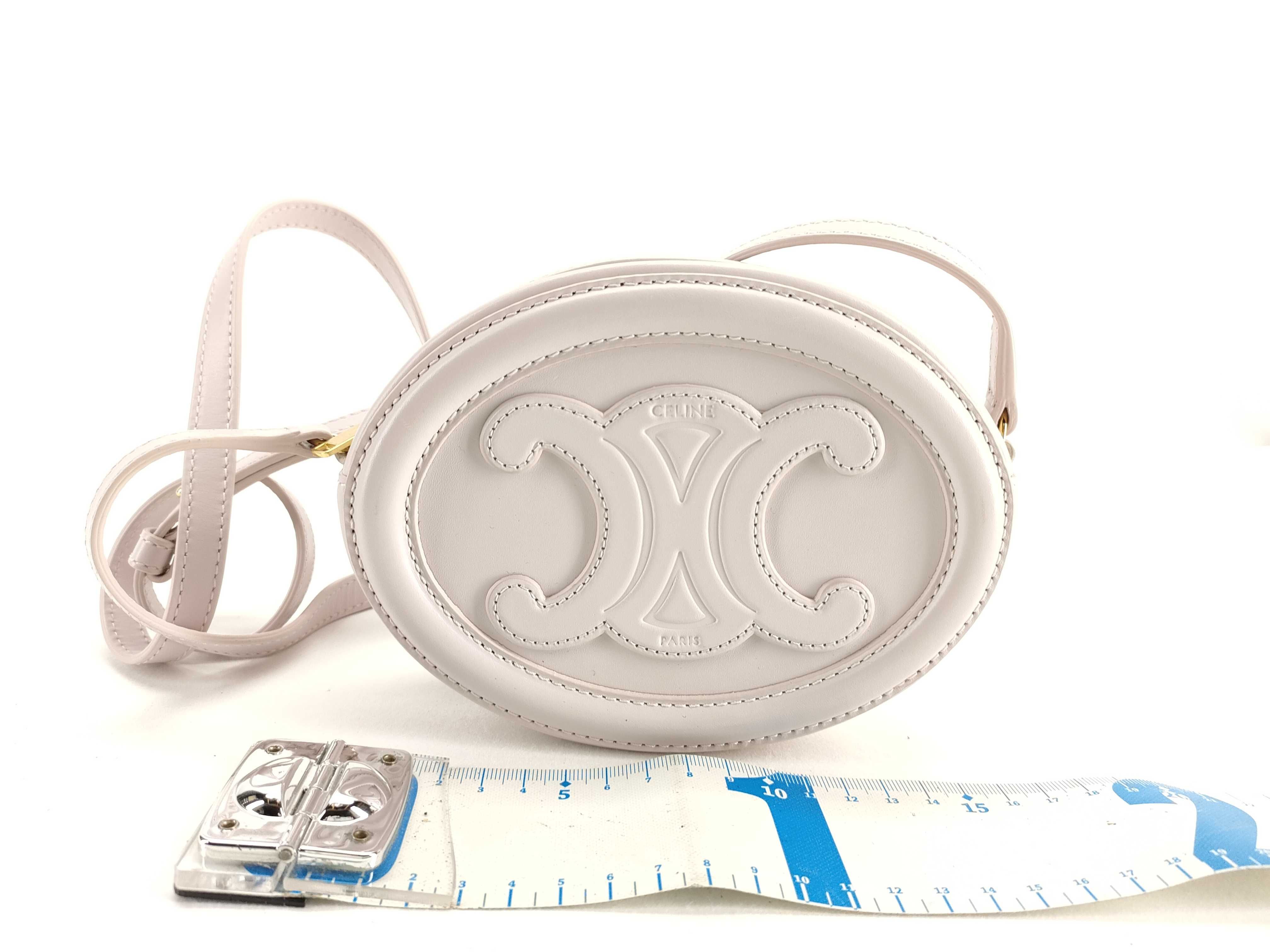 (D_0862)CELINE セリーヌ オーバル ポシェット トリオンフ ライトパープル レザー ショルダーバッグ
