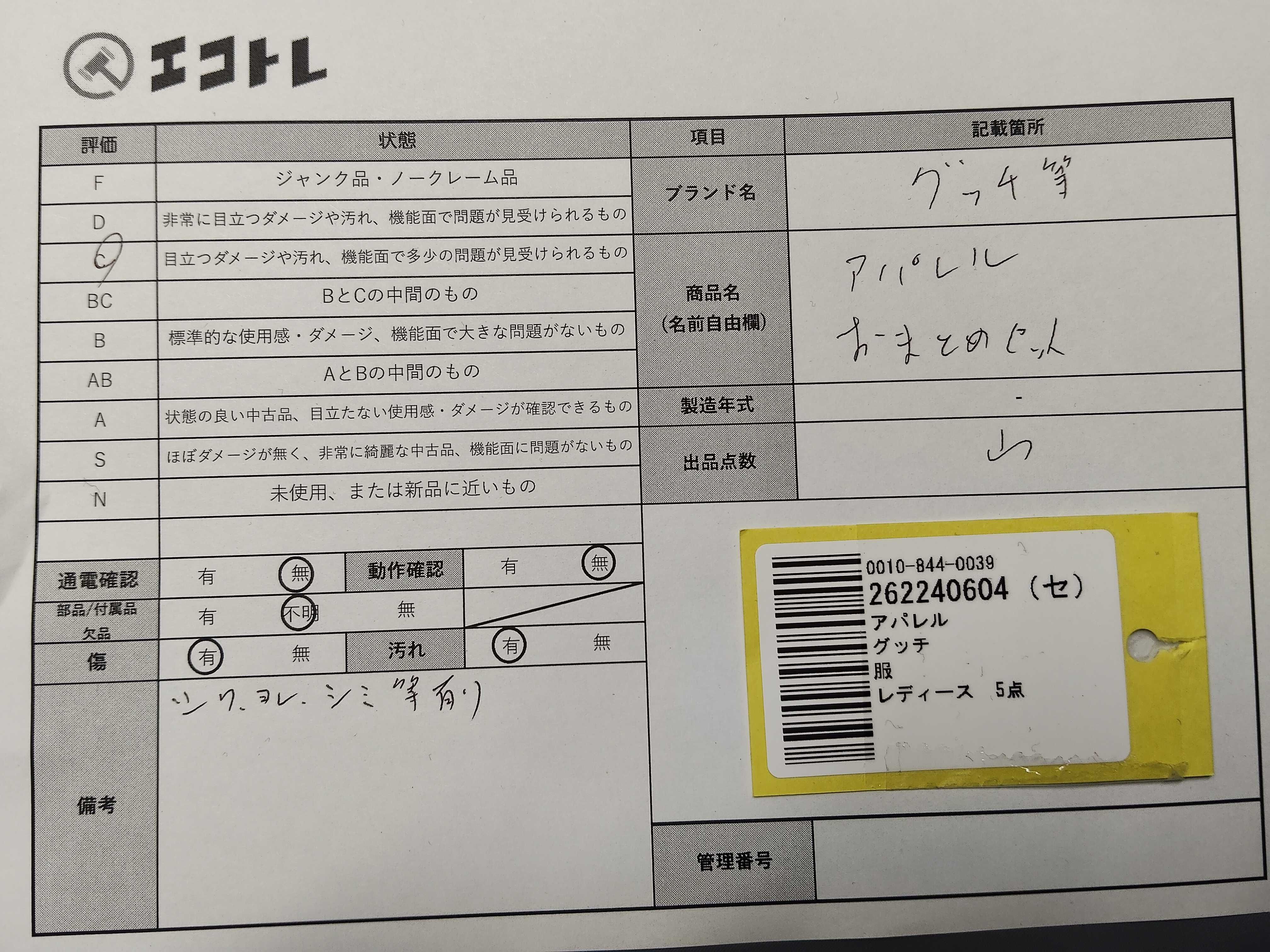 商品内容によって、JITBOXなどでの発送となる可能性がございます事ご理解下さい。年式などの商品情報詳細は写真にてご確認願います。※ご入札の際はご利用規約をよくお読みになってからのご参加お願いします。","タイプライン": "", "カテゴリ": "アパレル", "形状コード": "その他アパレル", "付属品コード": "", "シリアル・シール・型番": ""