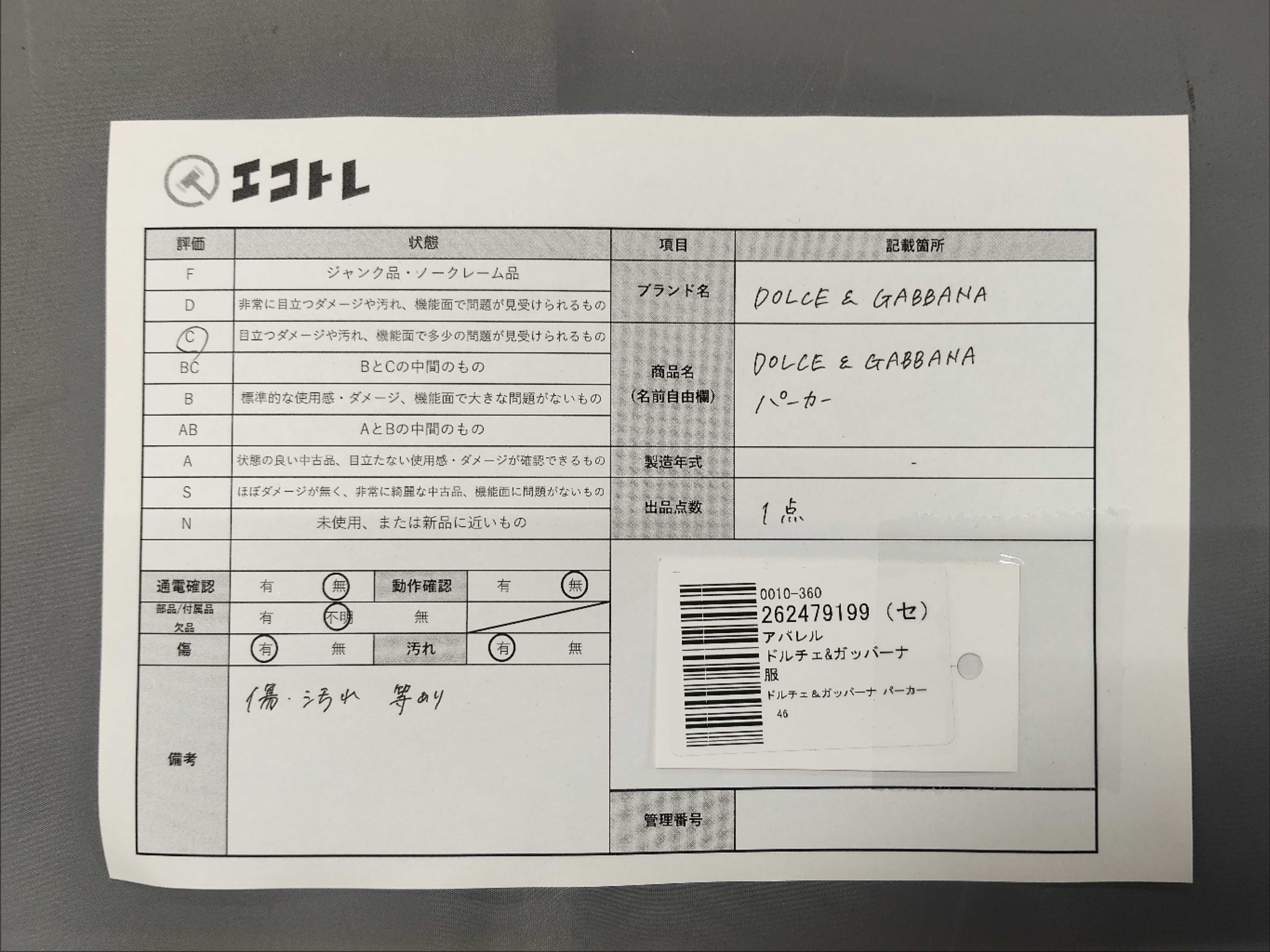 商品内容によって、JITBOXなどでの発送となる可能性がございます事ご理解下さい。年式などの商品情報詳細は写真にてご確認願います。※ご入札の際はご利用規約をよくお読みになってからのご参加お願いします。","タイプライン": "", "カテゴリ": "アパレル", "形状コード": "トップス", "付属品コード": "", "シリアル・シール・型番": ""
