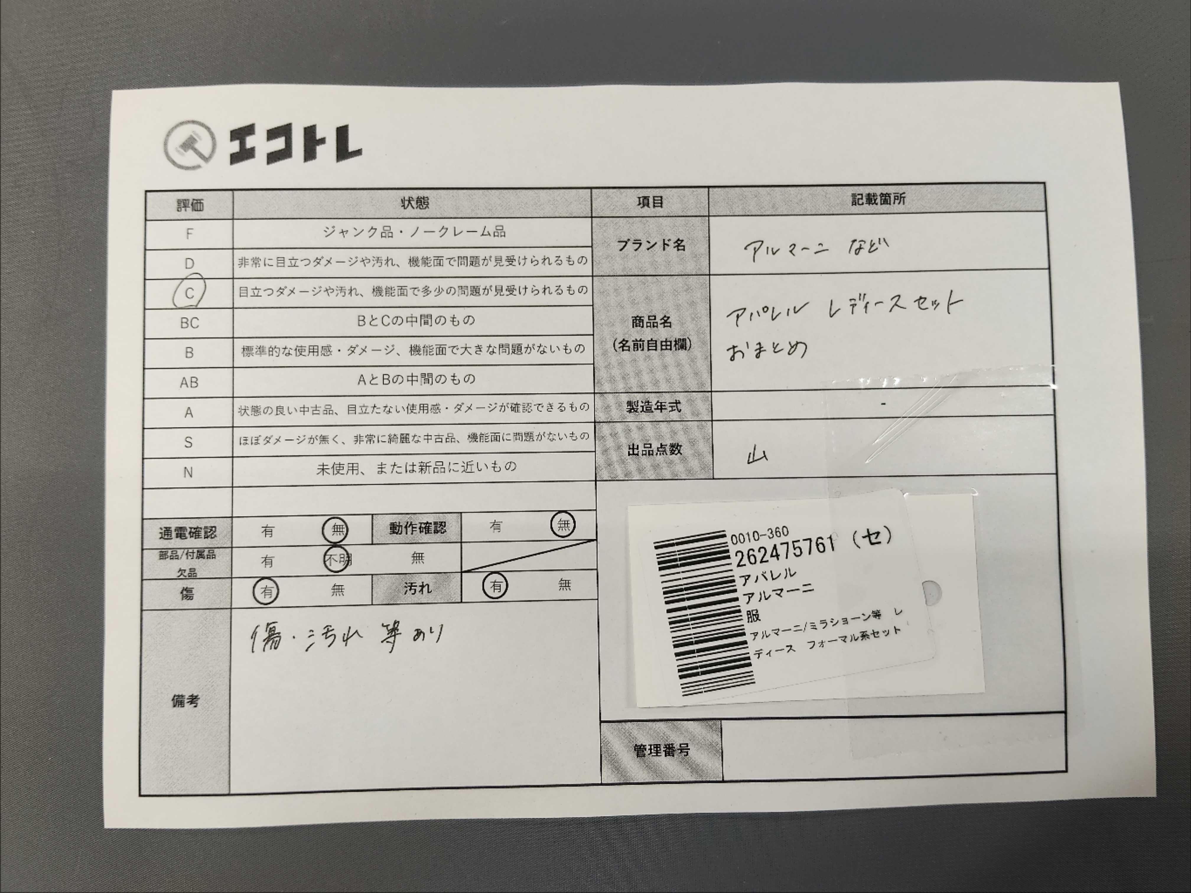 商品内容によって、JITBOXなどでの発送となる可能性がございます事ご理解下さい。年式などの商品情報詳細は写真にてご確認願います。※ご入札の際はご利用規約をよくお読みになってからのご参加お願いします。","タイプライン": "", "カテゴリ": "アパレル", "形状コード": "その他アパレル", "付属品コード": "", "シリアル・シール・型番": ""