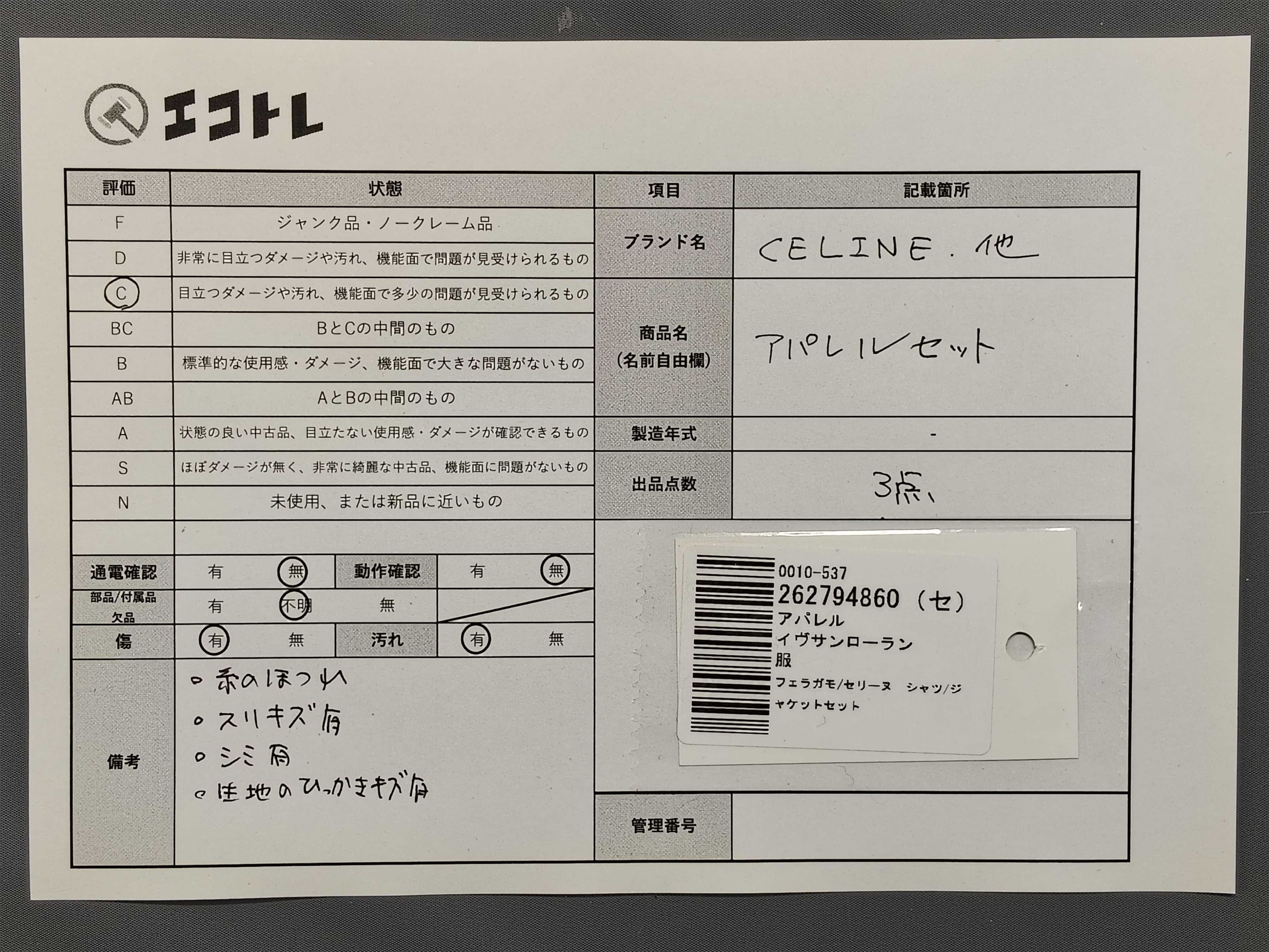 (11946_0019)▼Yves Saint Laurent フェラガモ/セリーヌ シャツ/ジャケットセット その他アパレル