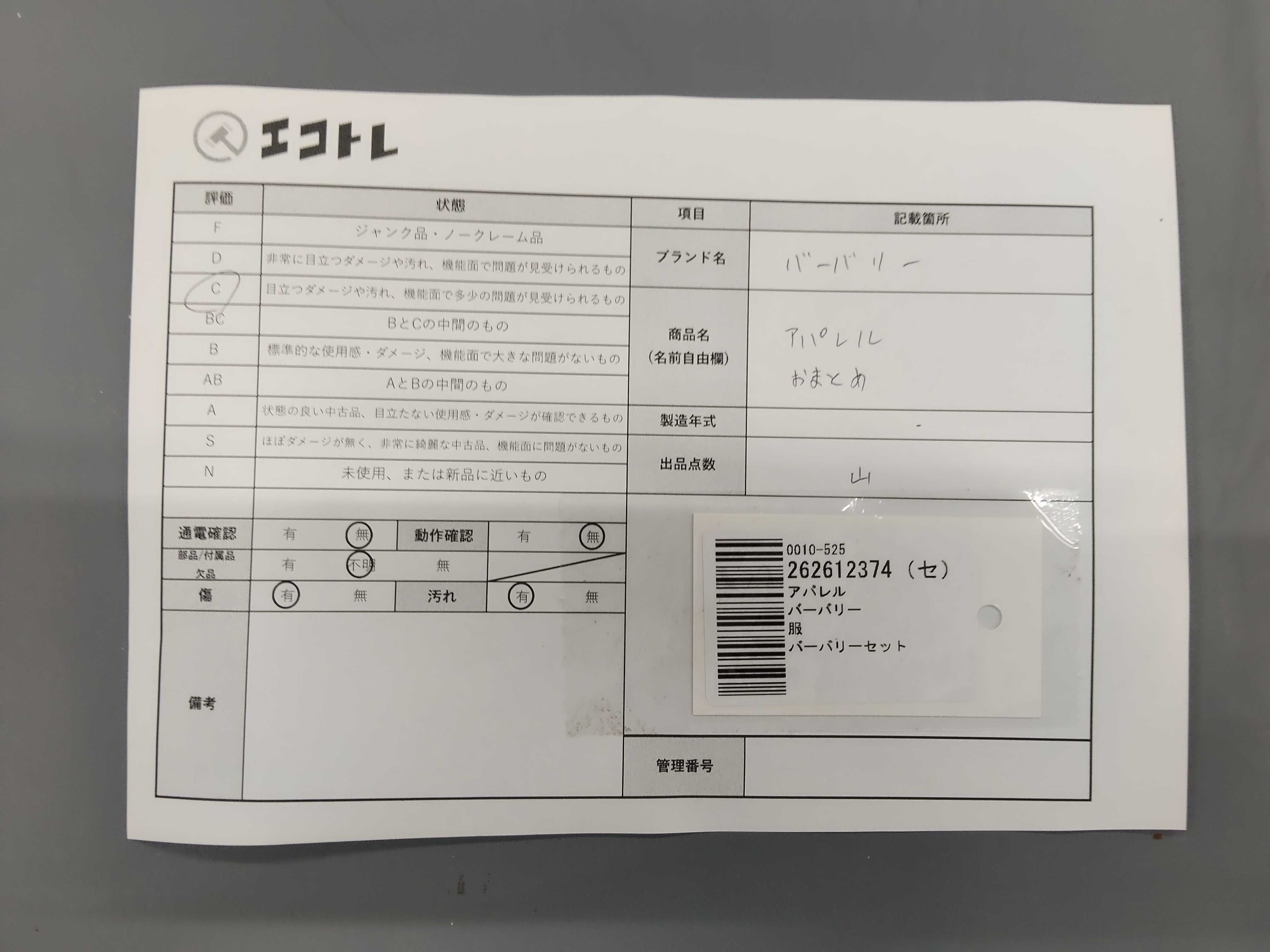 商品内容によって、JITBOXなどでの発送となる可能性がございます事ご理解下さい。年式などの商品情報詳細は写真にてご確認願います。※ご入札の際はご利用規約をよくお読みになってからのご参加お願いします。","タイプライン": "", "カテゴリ": "アパレル", "形状コード": "その他アパレル", "付属品コード": "", "シリアル・シール・型番": ""