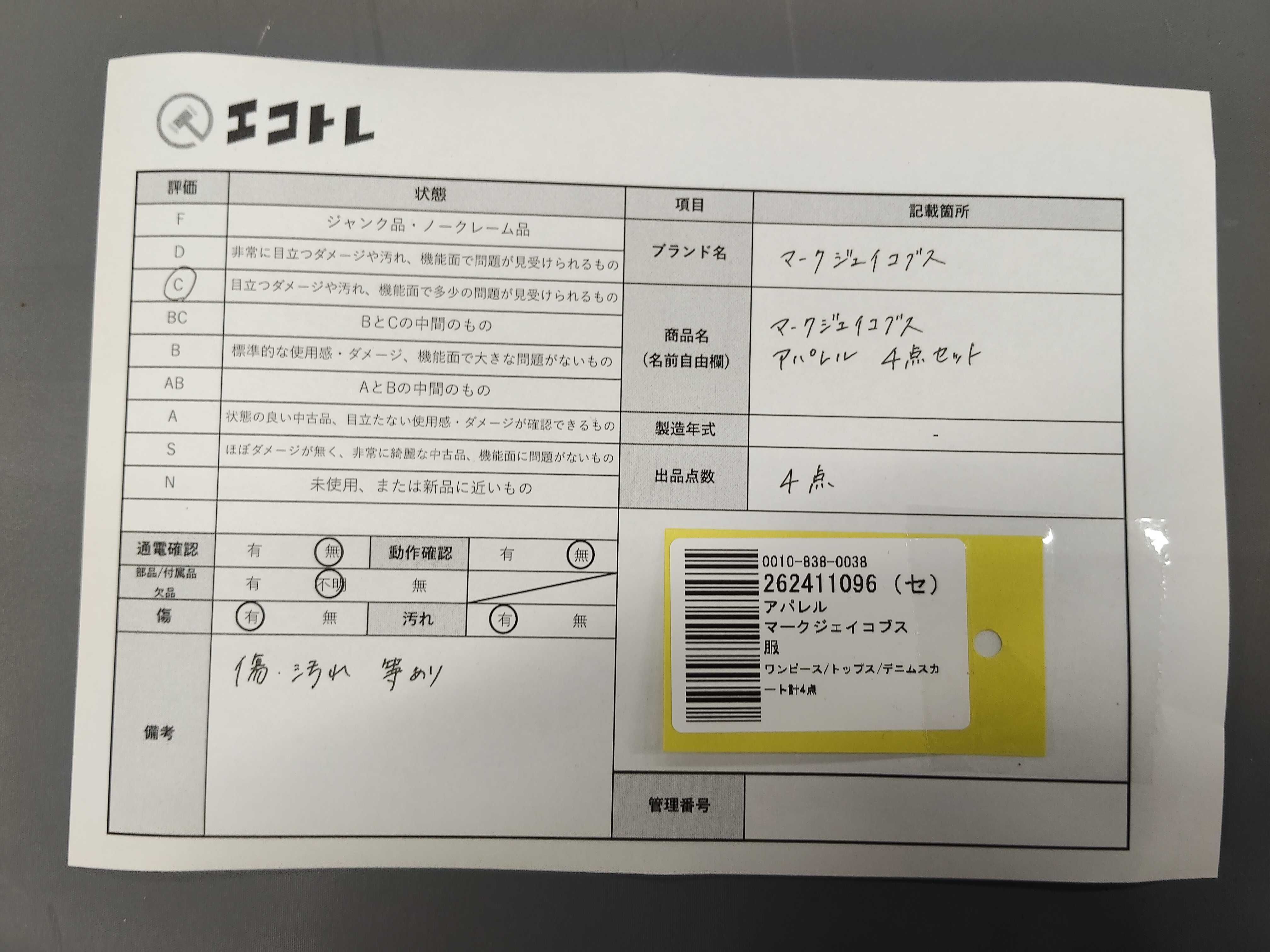 (11946_0044)▼MARC JACOBS ワンピース/トップス/デニムスカート計4点 その他アパレル