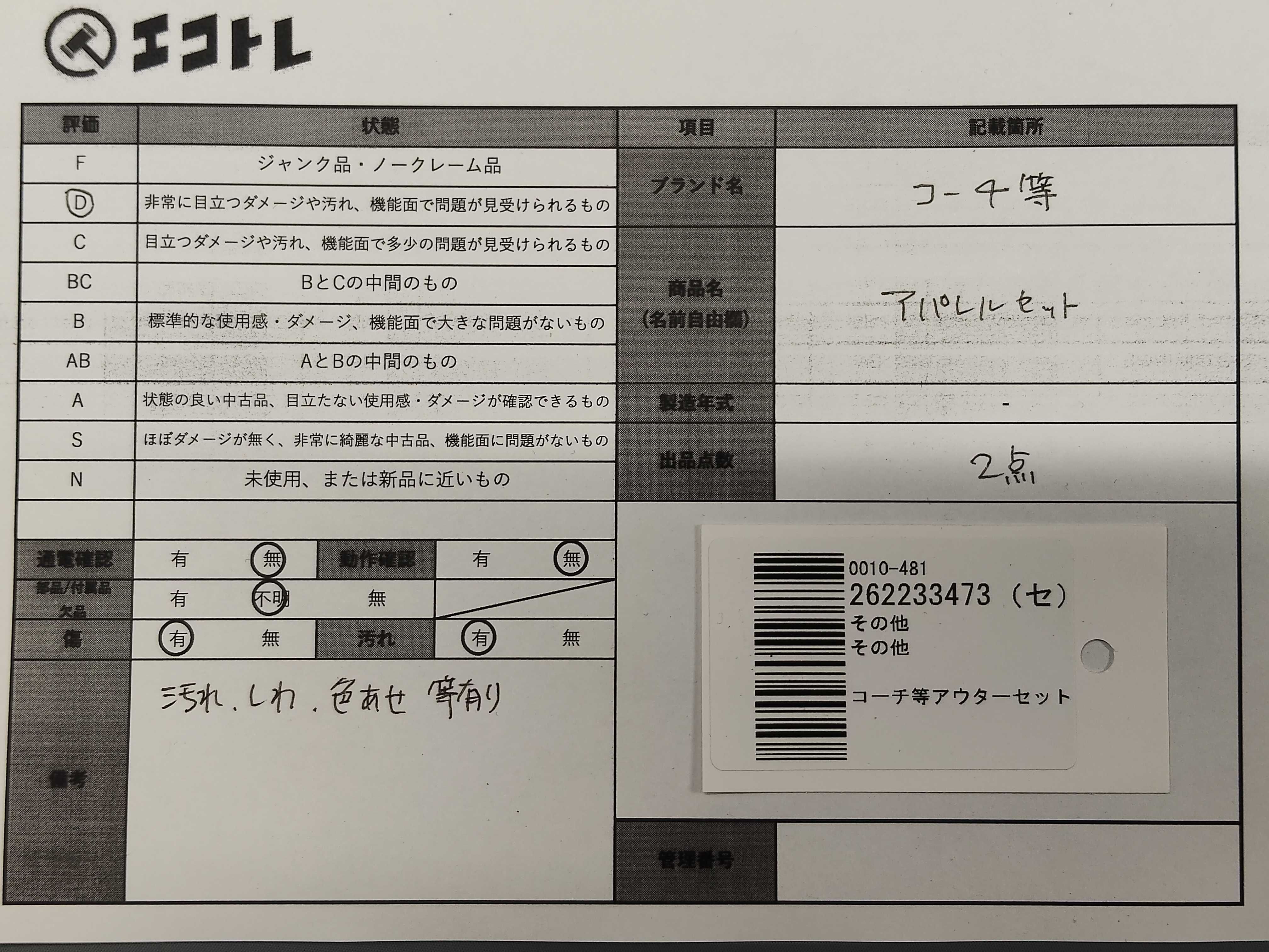 (11946_0072)▼コーチ等アウターセット その他アパレル
