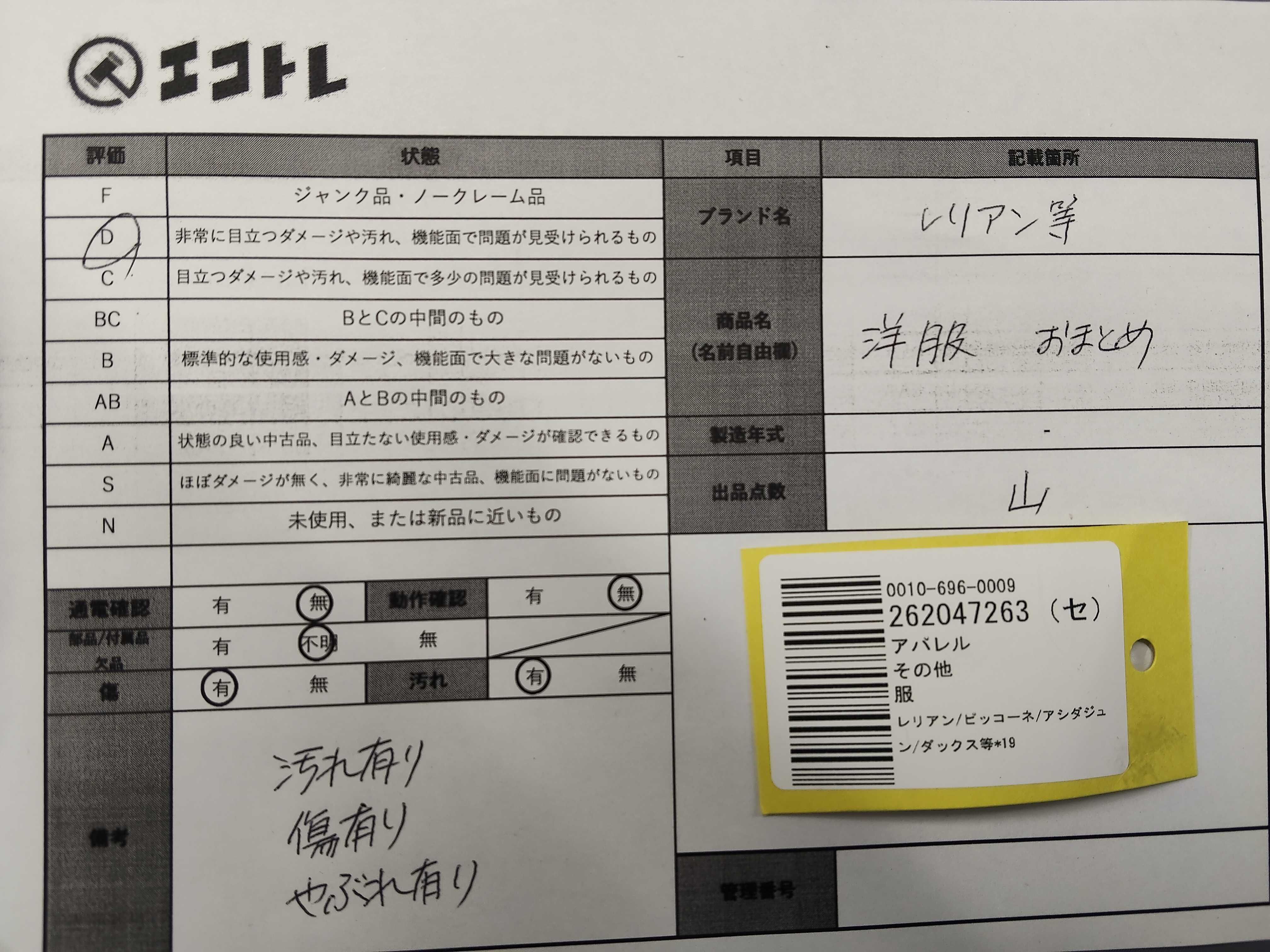 商品内容によって、JITBOXなどでの発送となる可能性がございます事ご理解下さい。年式などの商品情報詳細は写真にてご確認願います。※ご入札の際はご利用規約をよくお読みになってからのご参加お願いします。","タイプライン": "", "カテゴリ": "アパレル", "形状コード": "その他アパレル", "付属品コード": "", "シリアル・シール・型番": ""