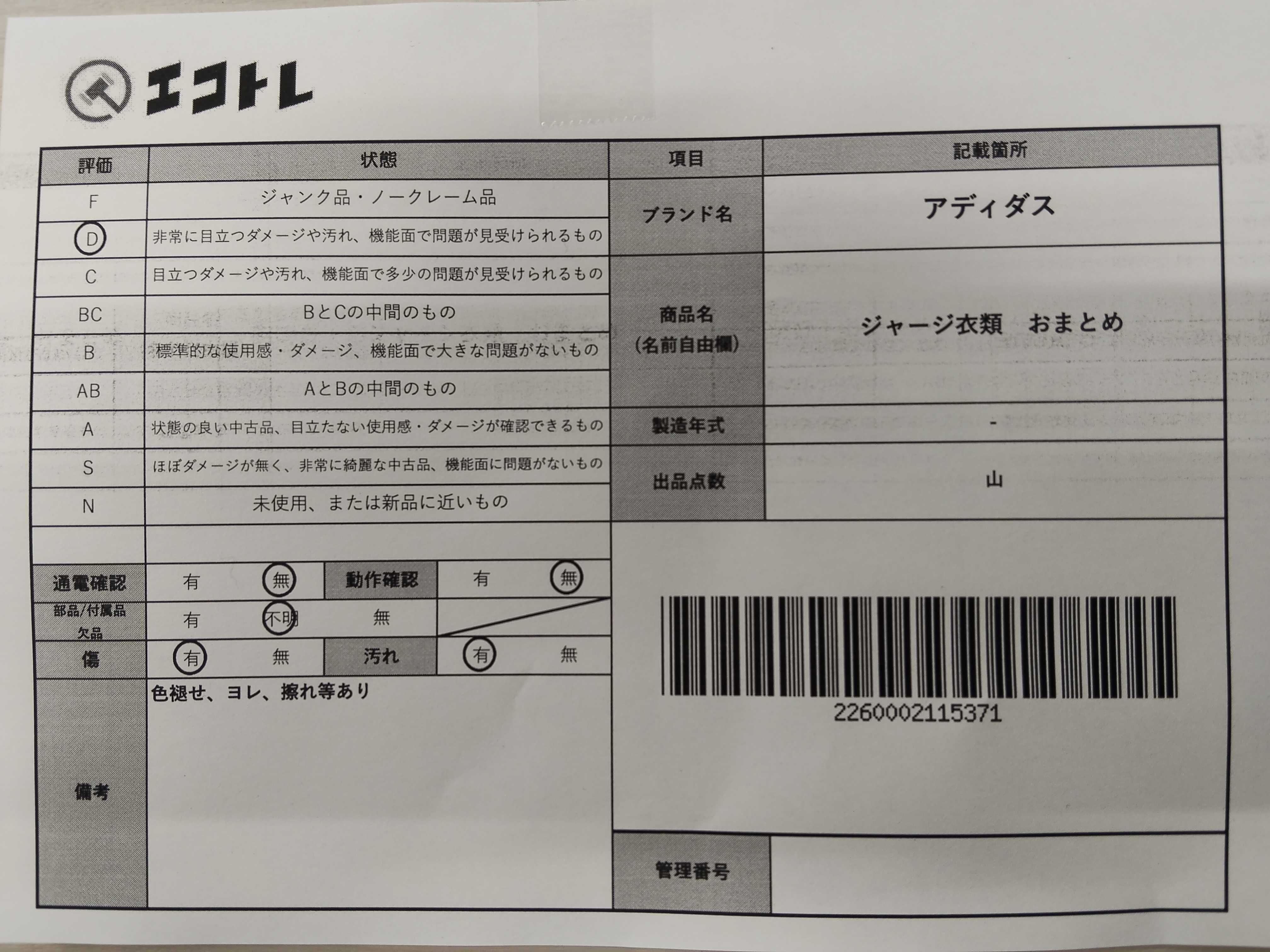 商品内容によって、JITBOXなどでの発送となる可能性がございます事ご理解下さい。年式などの商品情報詳細は写真にてご確認願います。※ご入札の際はご利用規約をよくお読みになってからのご参加お願いします。","タイプライン": "", "カテゴリ": "アパレル", "形状コード": "その他アパレル", "付属品コード": "", "シリアル・シール・型番": ""