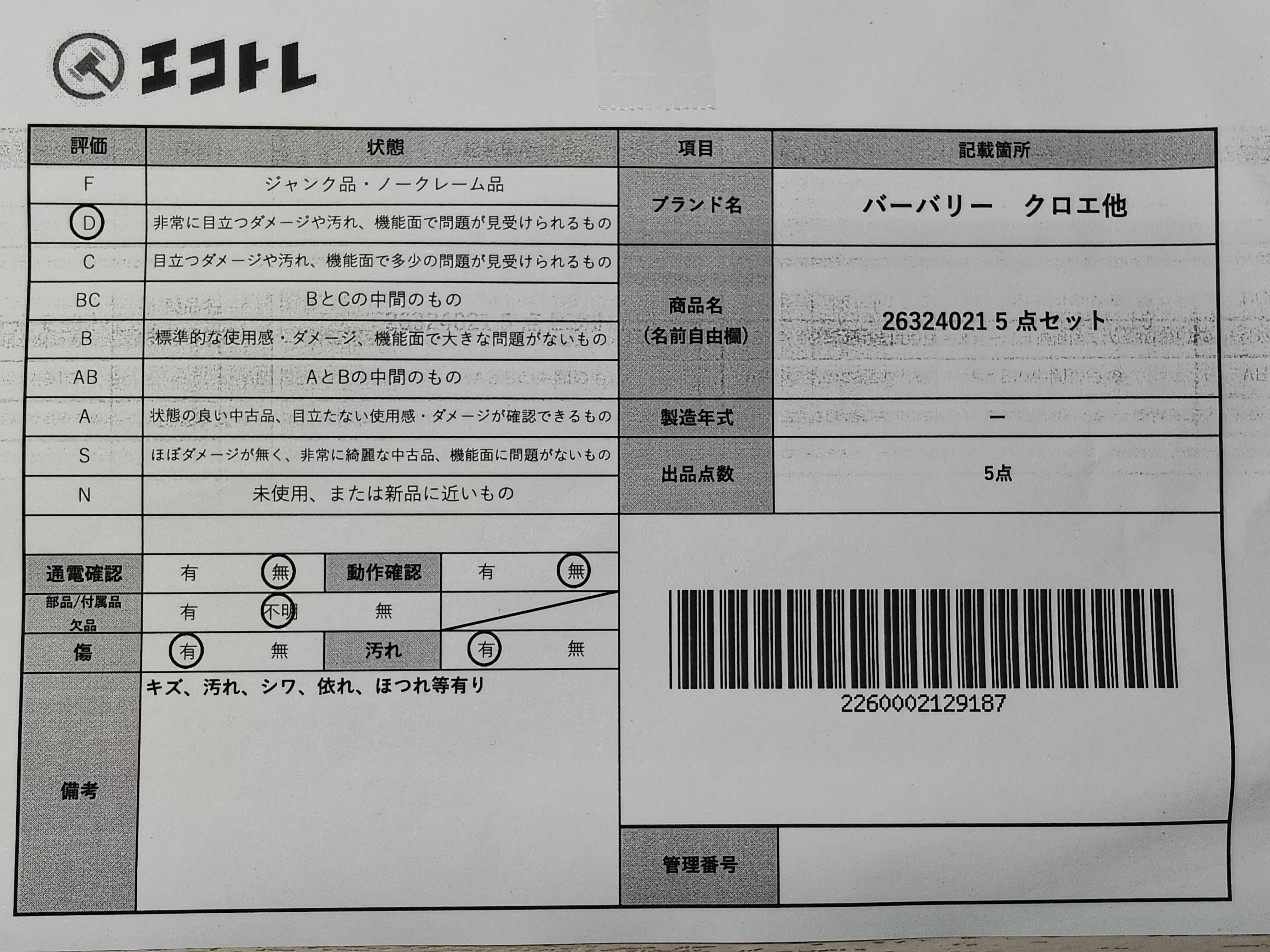(11946_0095)▼26324021 5 点セット その他アパレル