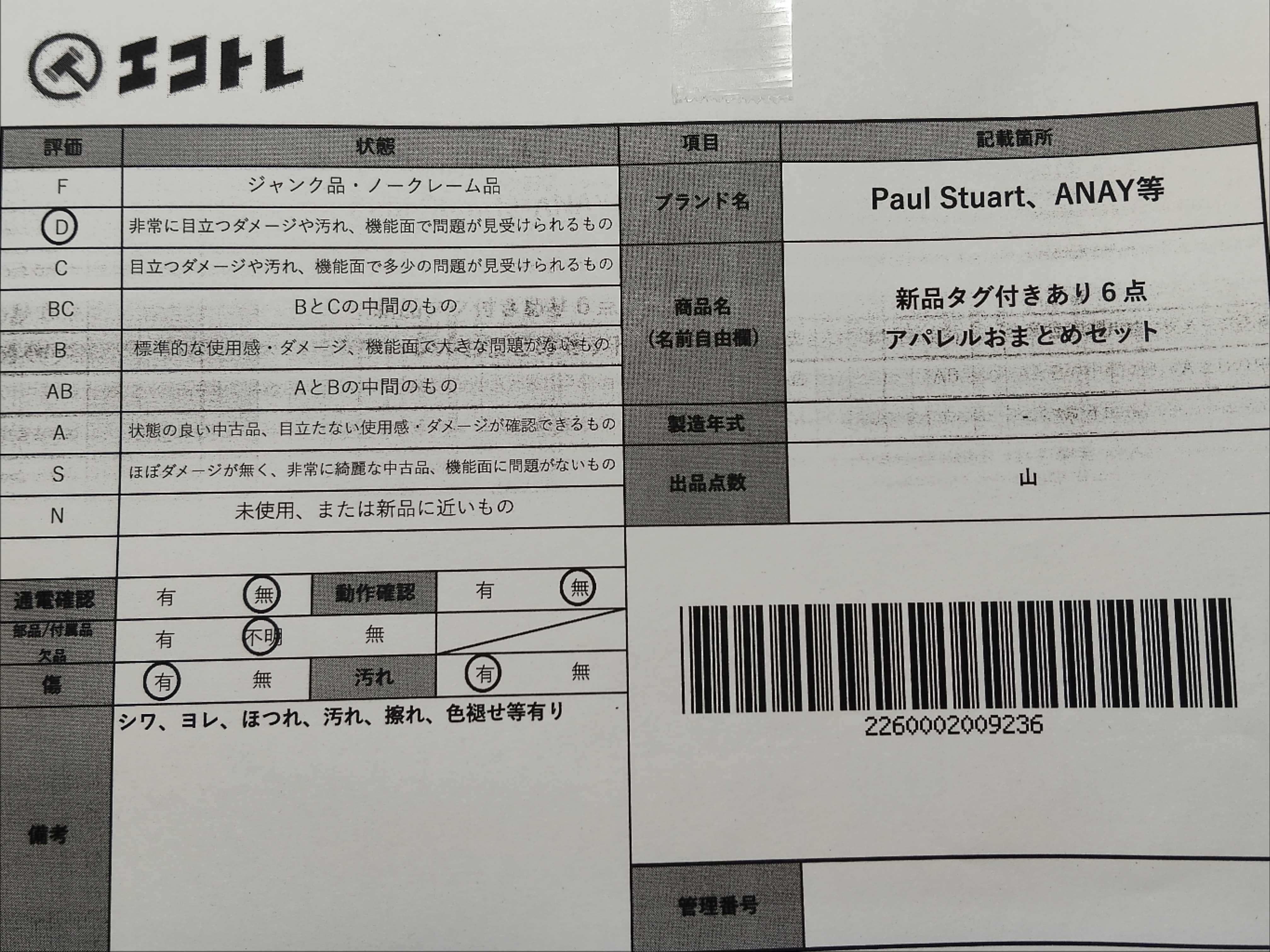 (11946_0112)▼Paul Stuart、ANAY等 新品タグ付きあり6点 アパレルおまとめセット その他アパレル