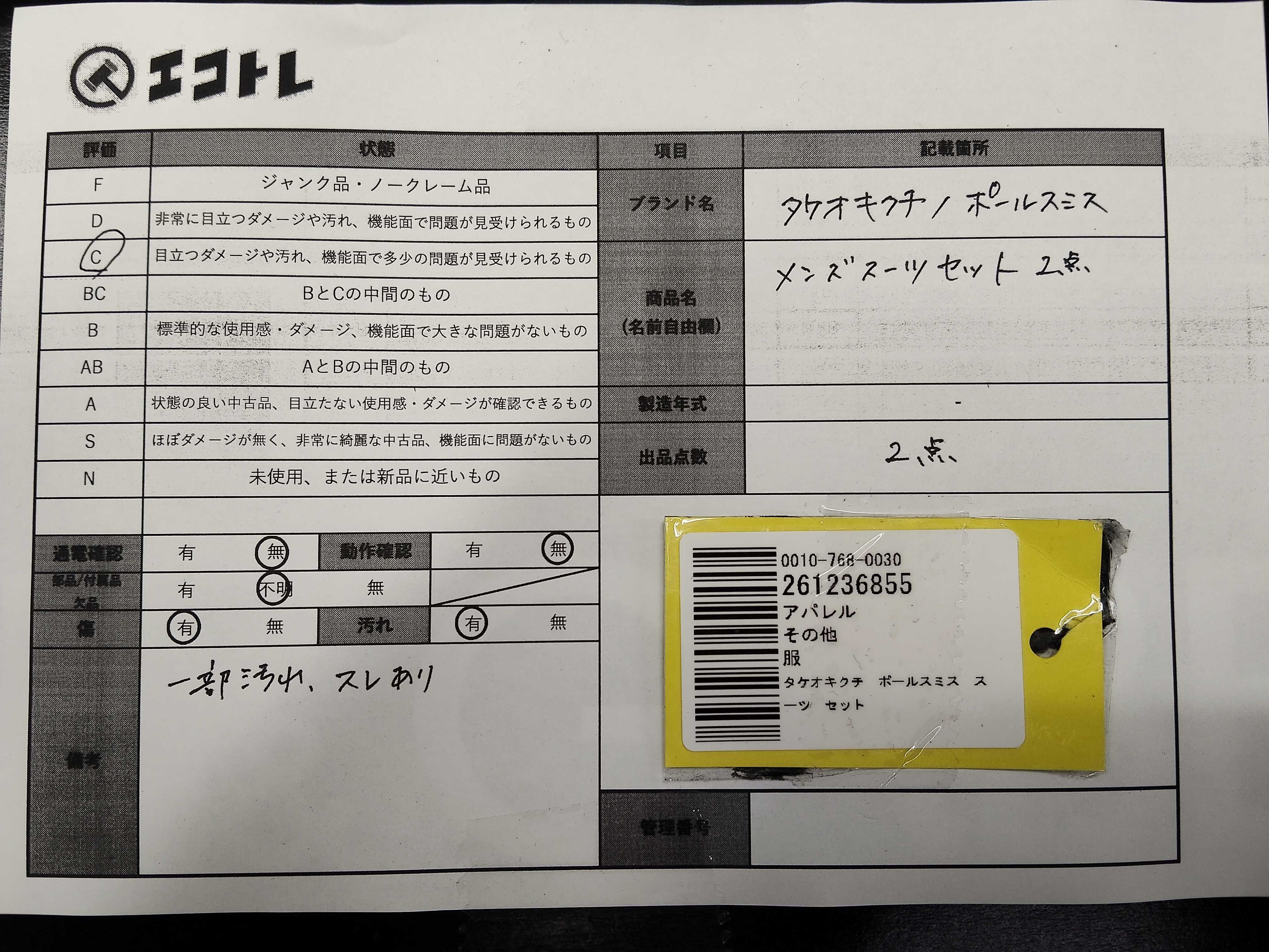 (11946_0153)▼タケオキクチ ポールスミス スーツ セット その他アパレル