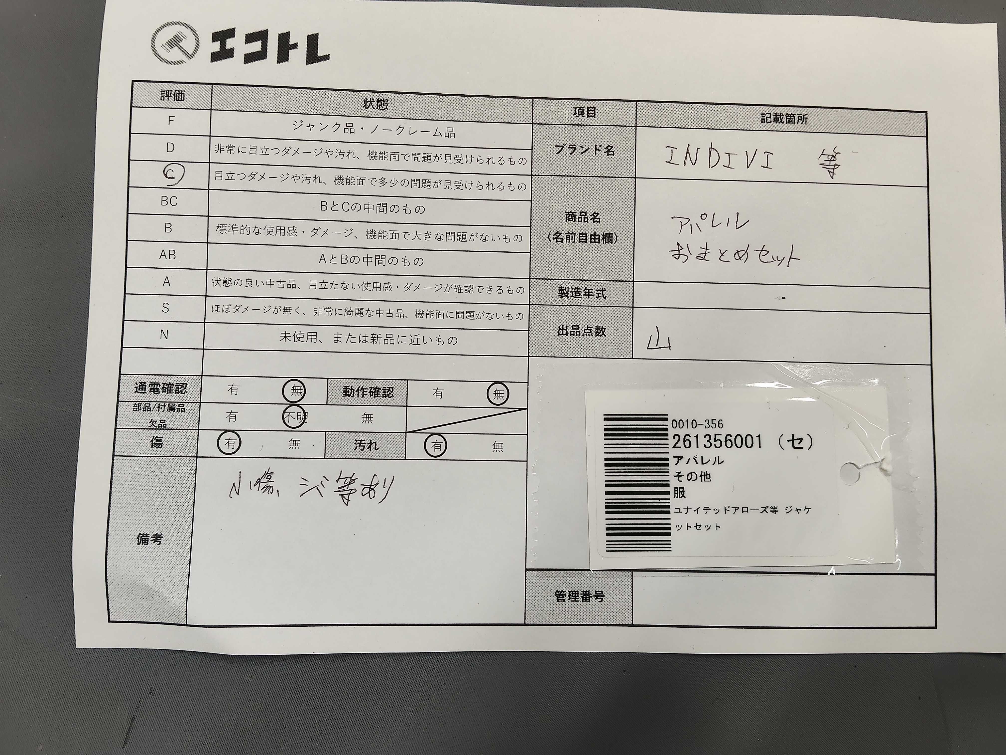 商品内容によって、JITBOXなどでの発送となる可能性がございます事ご理解下さい。年式などの商品情報詳細は写真にてご確認願います。※ご入札の際はご利用規約をよくお読みになってからのご参加お願いします。","タイプライン": "", "カテゴリ": "アパレル", "形状コード": "その他アパレル", "付属品コード": "", "シリアル・シール・型番": ""