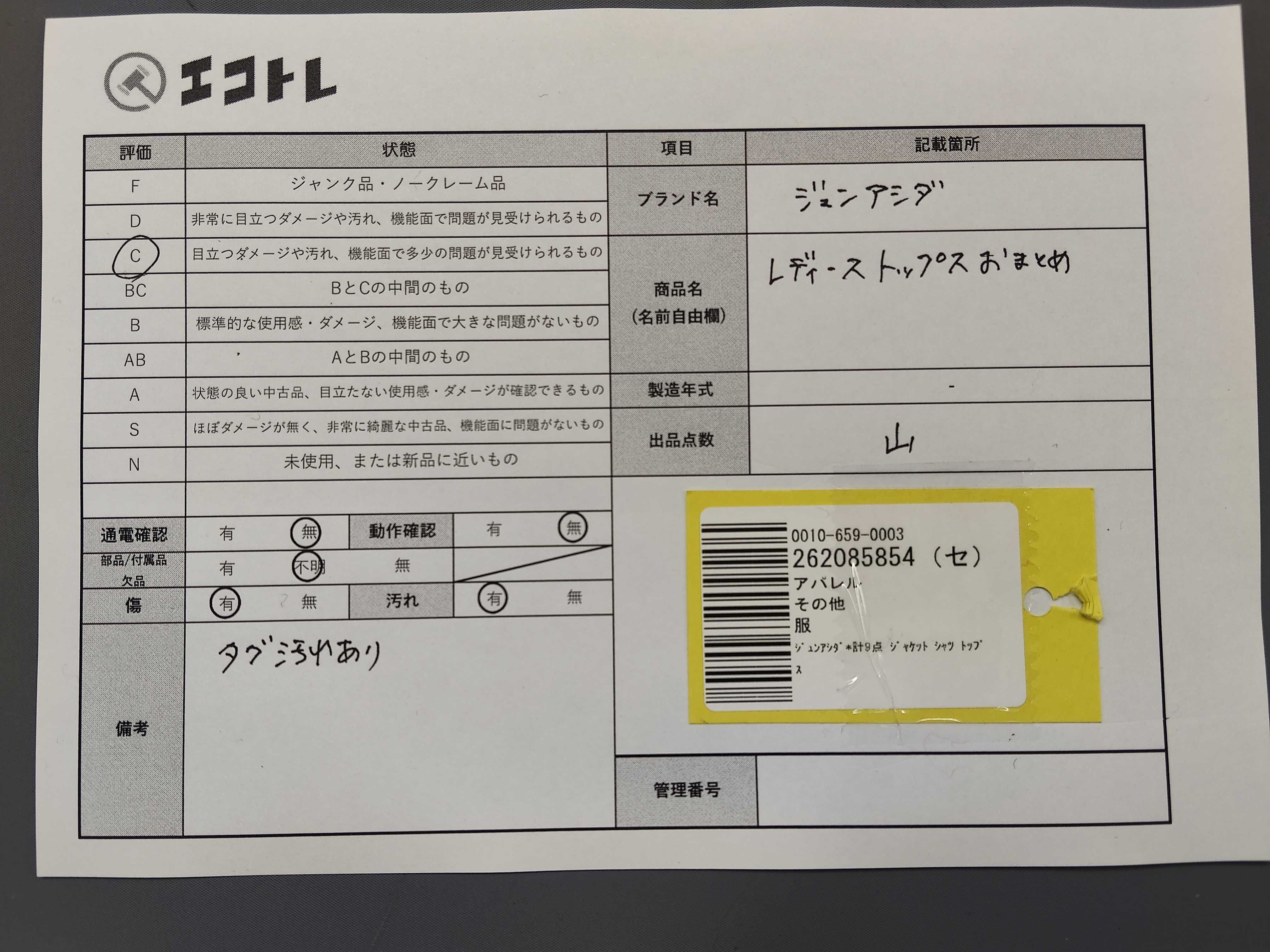 (11946_0170)▼ジュンアシダ*計9点 ジャケット シャツ トップス おまとめ その他アパレル