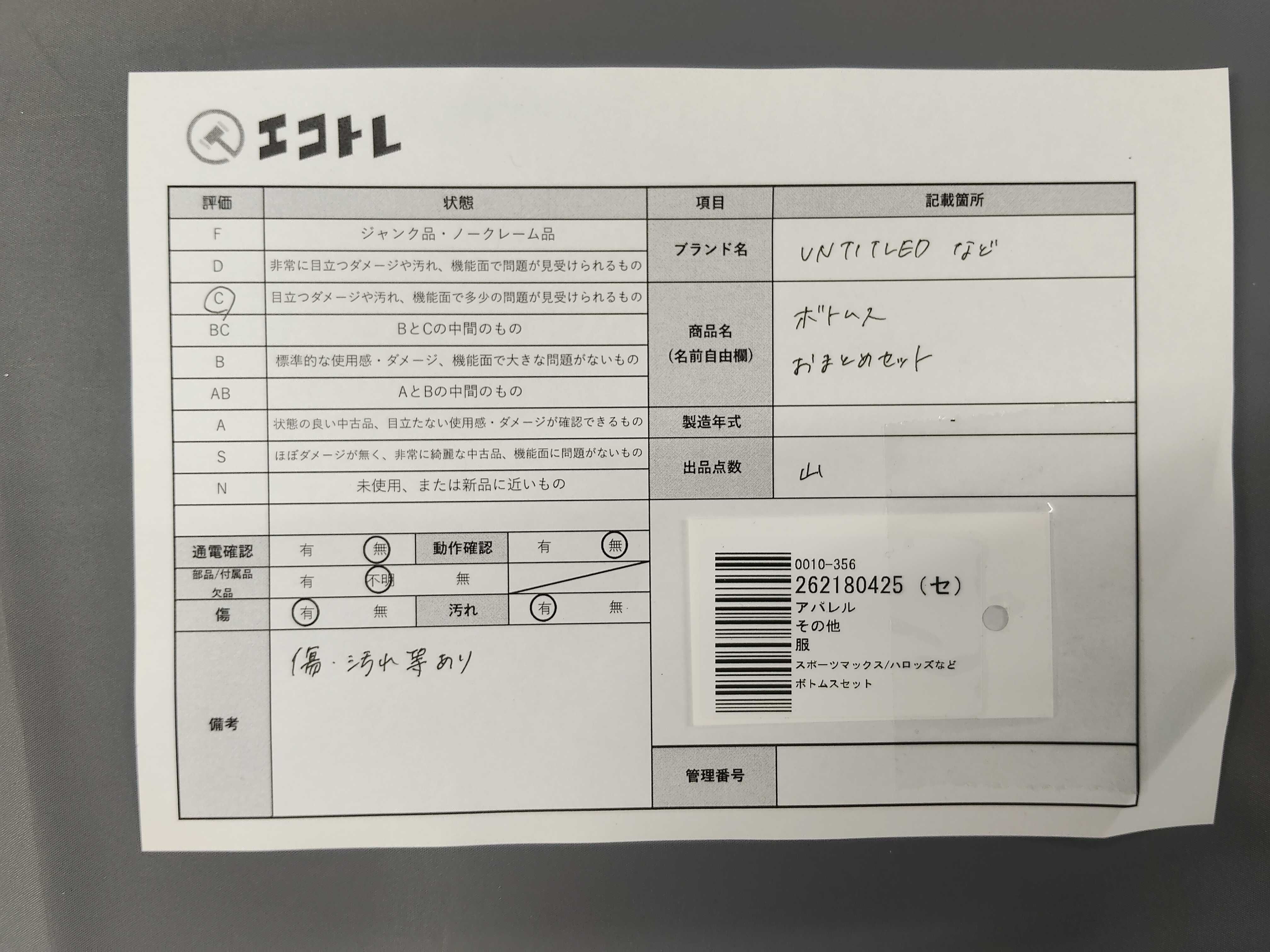 商品内容によって、JITBOXなどでの発送となる可能性がございます事ご理解下さい。年式などの商品情報詳細は写真にてご確認願います。※ご入札の際はご利用規約をよくお読みになってからのご参加お願いします。","タイプライン": "", "カテゴリ": "アパレル", "形状コード": "その他アパレル", "付属品コード": "", "シリアル・シール・型番": ""