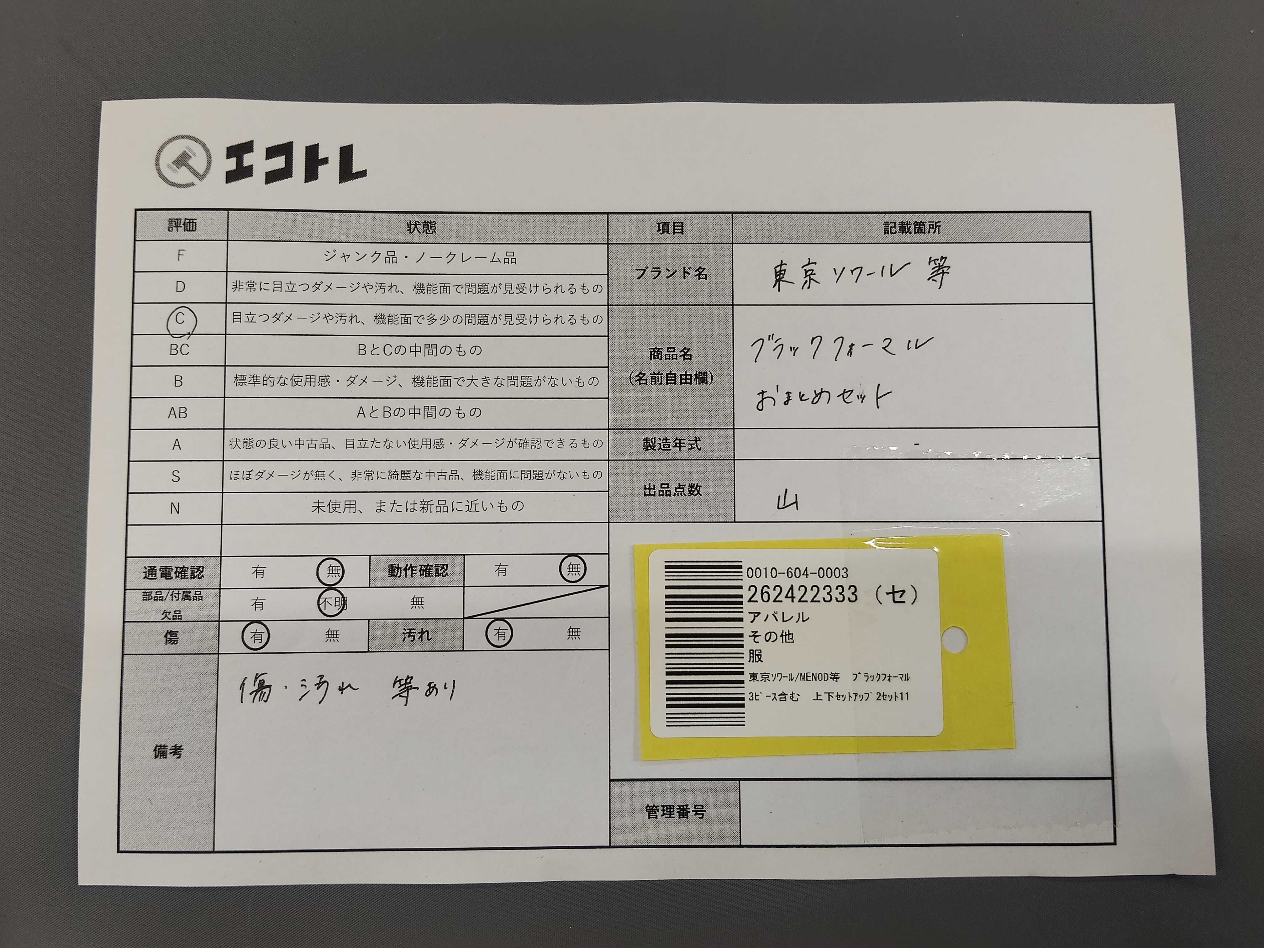 商品内容によって、JITBOXなどでの発送となる可能性がございます事ご理解下さい。年式などの商品情報詳細は写真にてご確認願います。※ご入札の際はご利用規約をよくお読みになってからのご参加お願いします。","タイプライン": "", "カテゴリ": "アパレル", "形状コード": "その他アパレル", "付属品コード": "", "シリアル・シール・型番": ""
