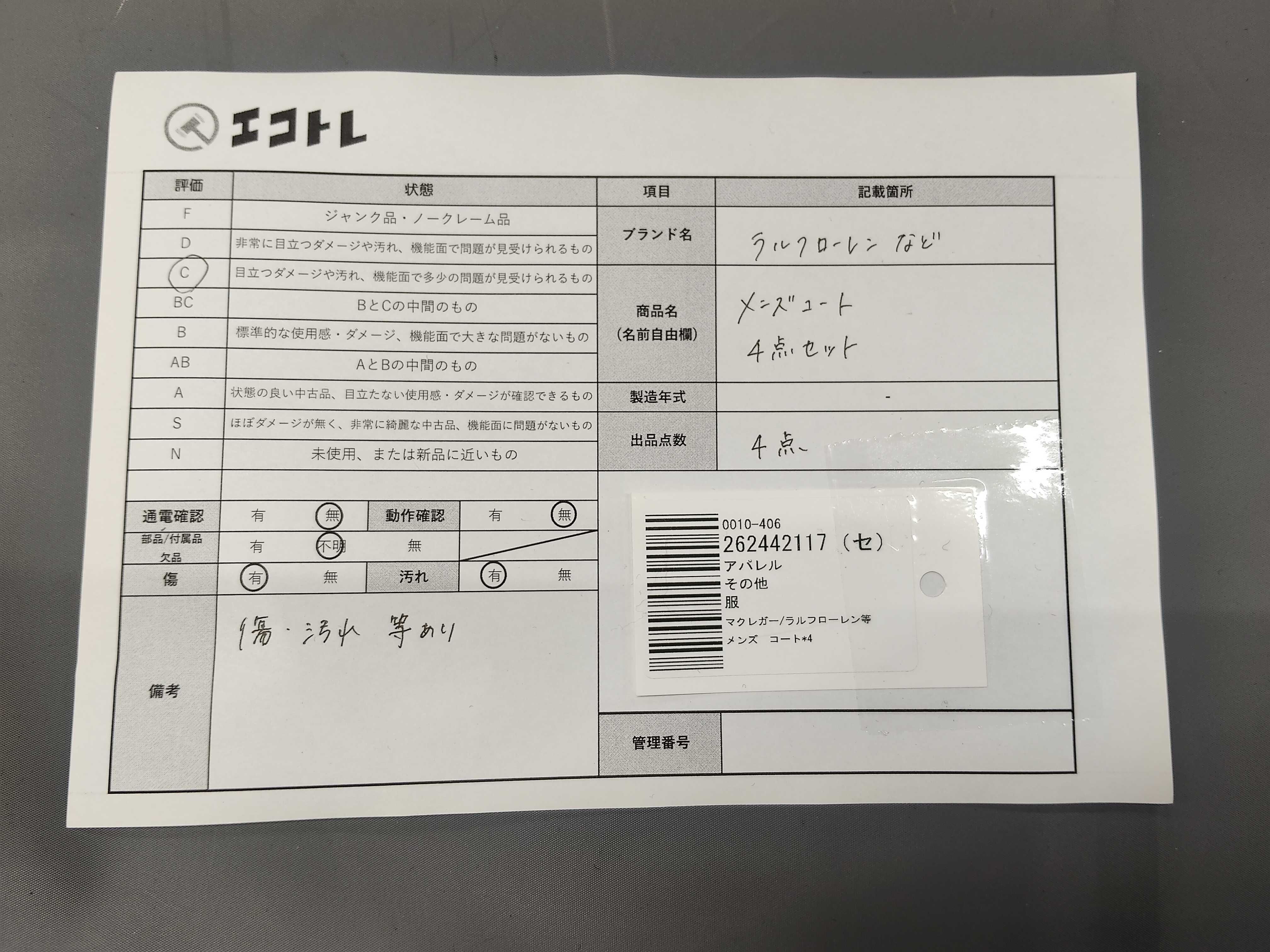 (11946_0192)▼マクレガー/ラルフローレン等 メンズ コート*4 その他アパレル