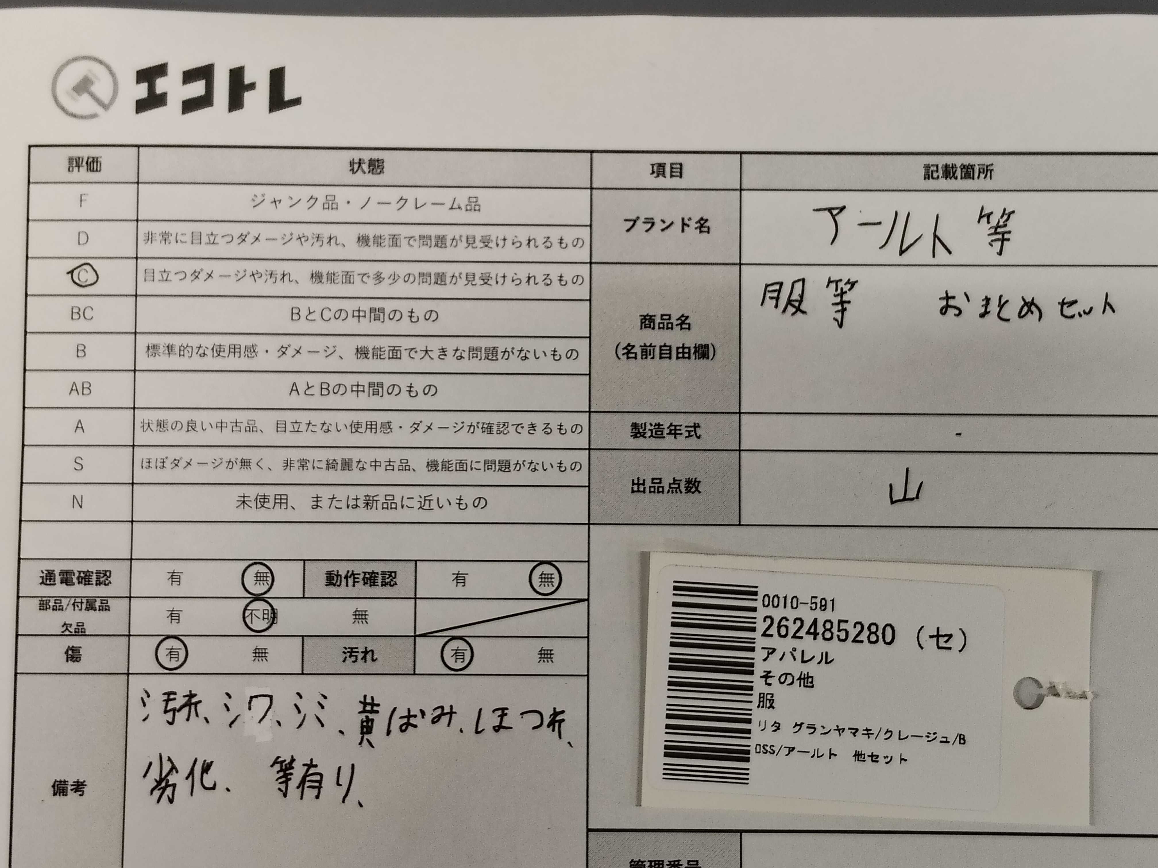 商品内容によって、JITBOXなどでの発送となる可能性がございます事ご理解下さい。年式などの商品情報詳細は写真にてご確認願います。※ご入札の際はご利用規約をよくお読みになってからのご参加お願いします。","タイプライン": "", "カテゴリ": "アパレル", "形状コード": "その他アパレル", "付属品コード": "", "シリアル・シール・型番": ""
