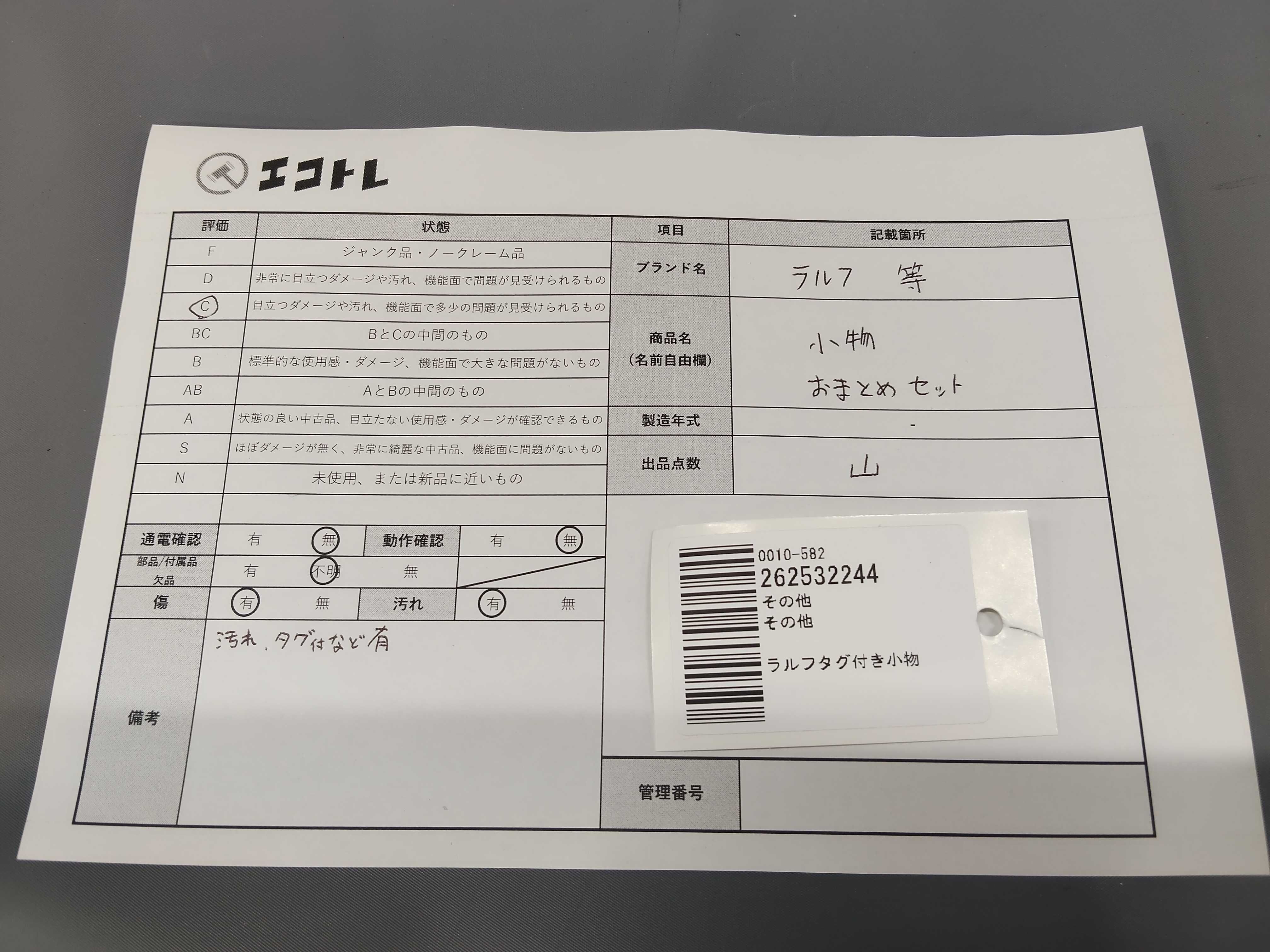 (11946_0206)▼ラルフタグ付き小物 おまとめ その他アパレル
