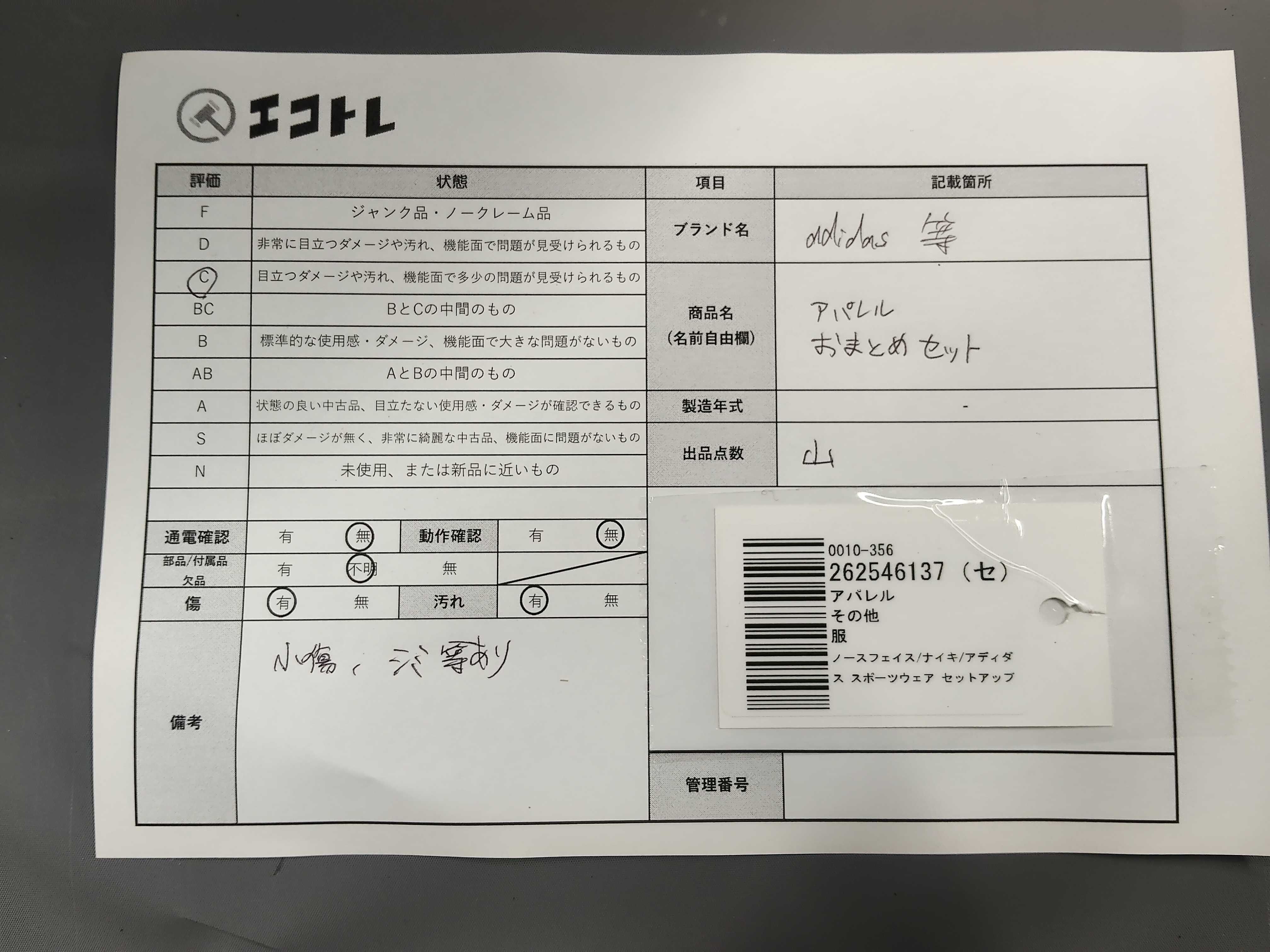 (11946_0214)▼ノースフェイス/ナイキ/アディダス スポーツウェア セットアップ おまとめ その他アパレル