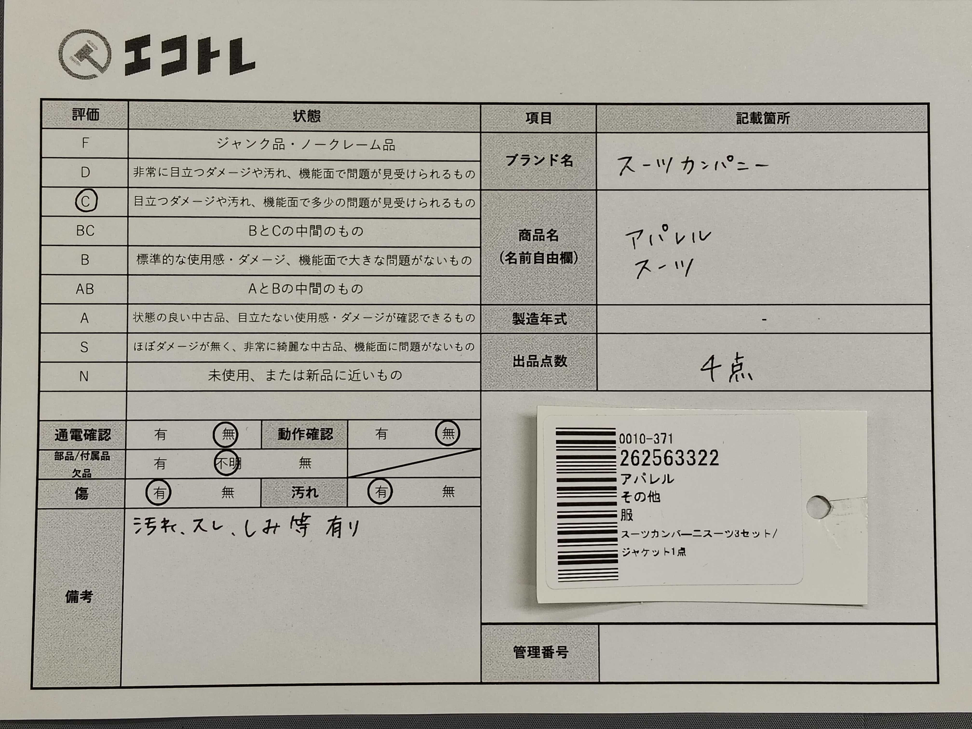 商品内容によって、JITBOXなどでの発送となる可能性がございます事ご理解下さい。年式などの商品情報詳細は写真にてご確認願います。※ご入札の際はご利用規約をよくお読みになってからのご参加お願いします。","タイプライン": "", "カテゴリ": "アパレル", "形状コード": "その他アパレル", "付属品コード": "", "シリアル・シール・型番": ""