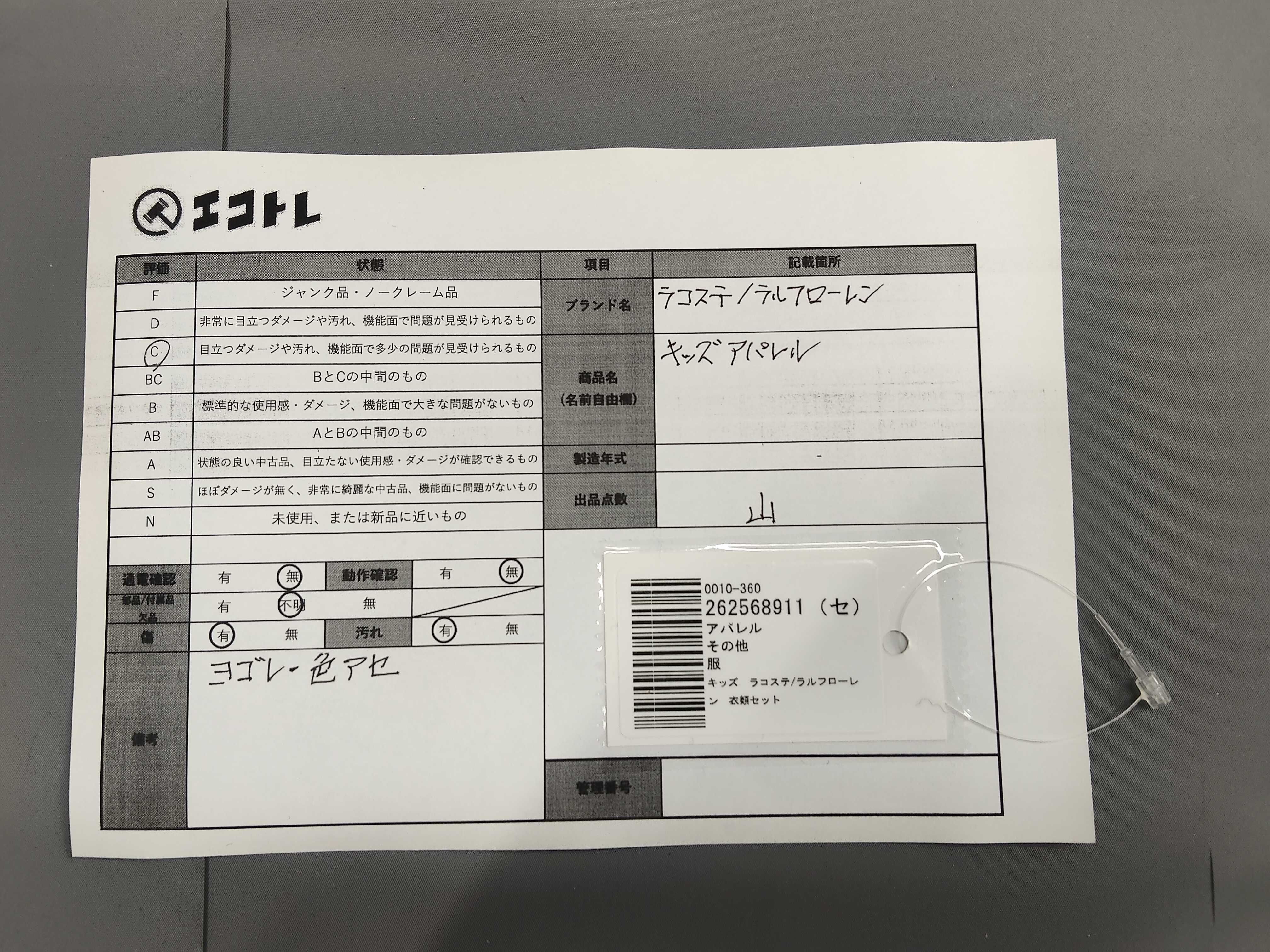 (11946_0228)▼キッズ ラコステ/ラルフローレン 衣類セット その他アパレル