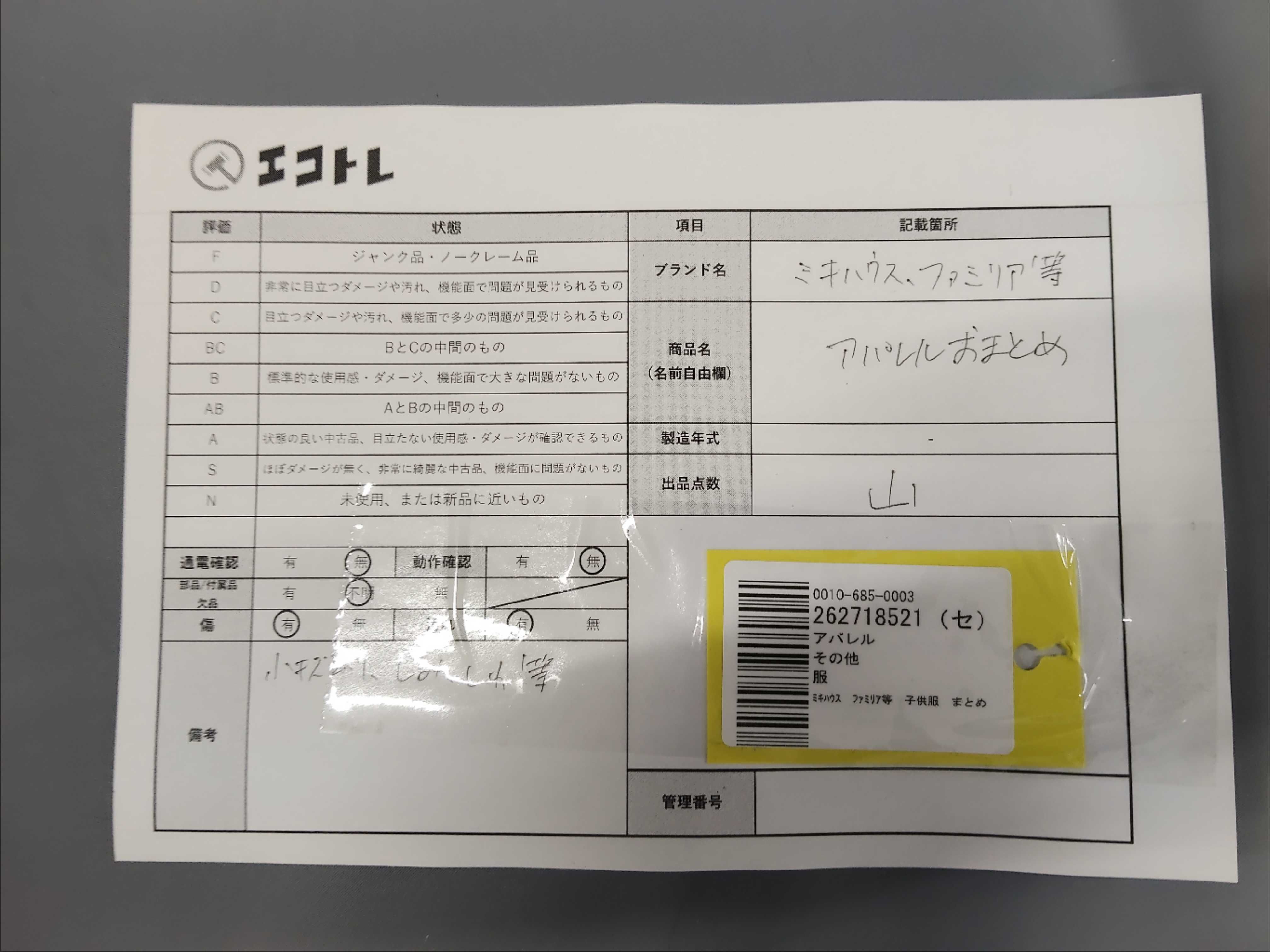 商品内容によって、JITBOXなどでの発送となる可能性がございます事ご理解下さい。年式などの商品情報詳細は写真にてご確認願います。※ご入札の際はご利用規約をよくお読みになってからのご参加お願いします。","タイプライン": "", "カテゴリ": "アパレル", "形状コード": "その他アパレル", "付属品コード": "", "シリアル・シール・型番": ""