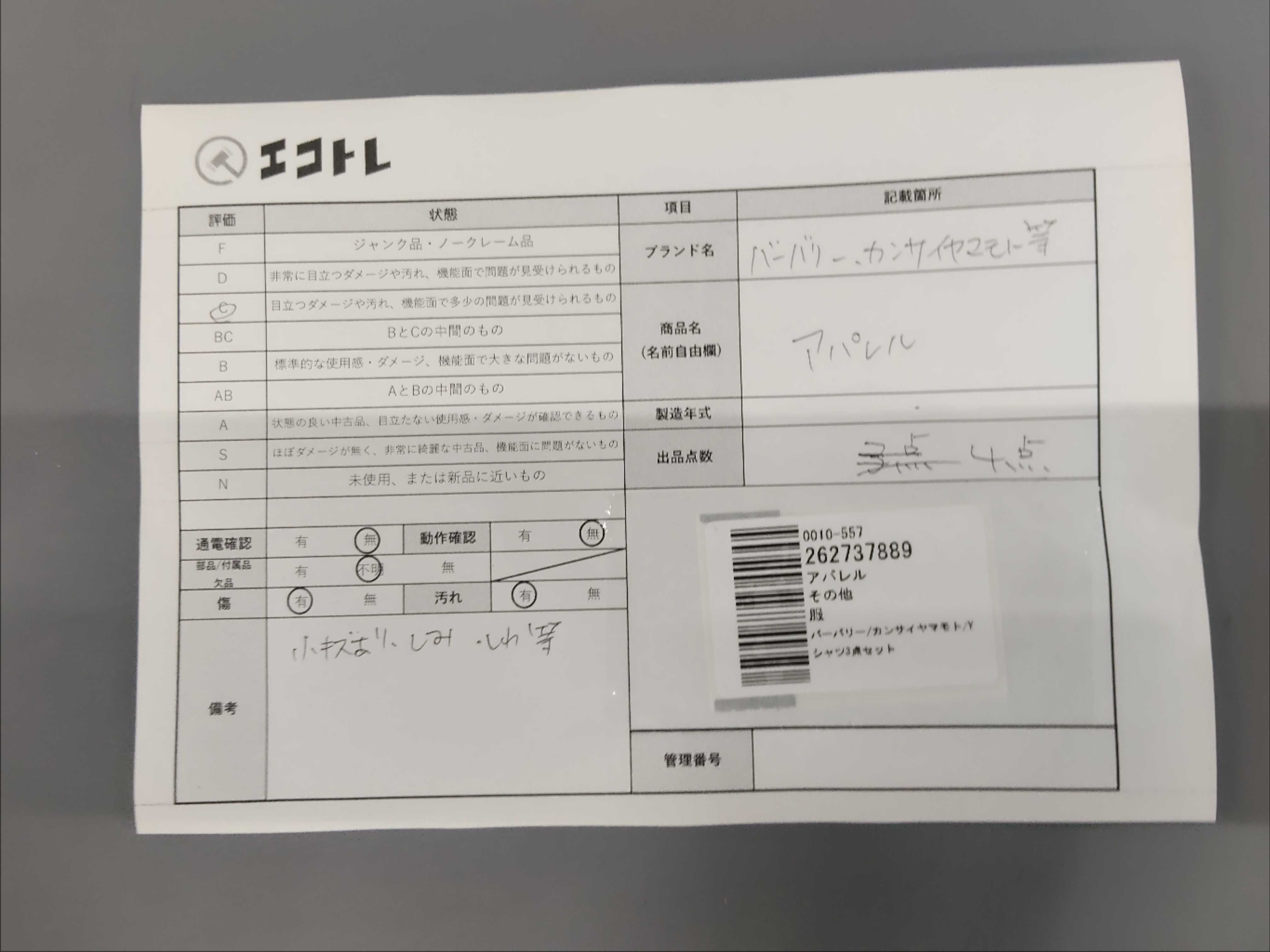 商品内容によって、JITBOXなどでの発送となる可能性がございます事ご理解下さい。年式などの商品情報詳細は写真にてご確認願います。※ご入札の際はご利用規約をよくお読みになってからのご参加お願いします。","タイプライン": "", "カテゴリ": "アパレル", "形状コード": "その他アパレル", "付属品コード": "", "シリアル・シール・型番": ""
