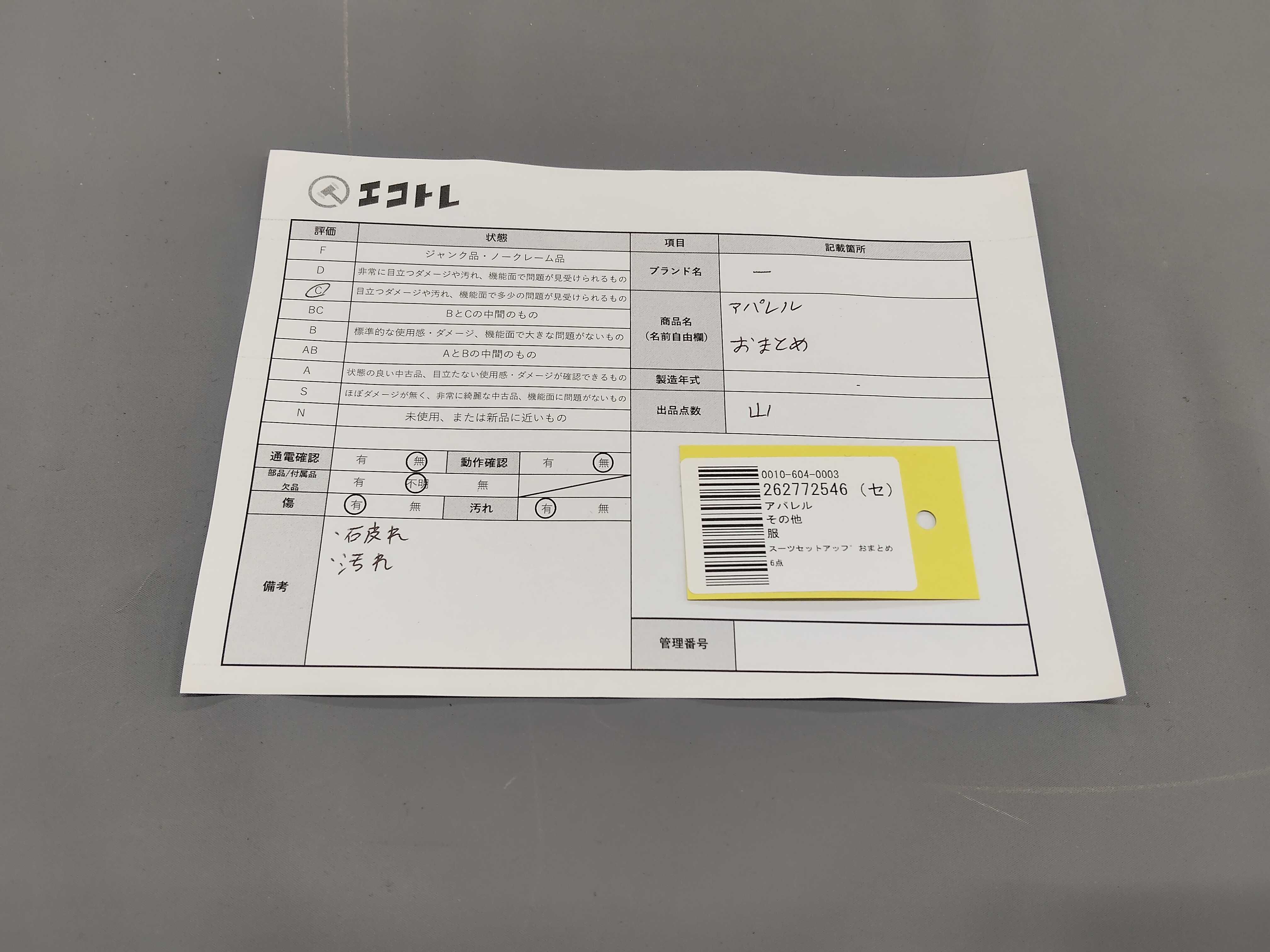 商品内容によって、JITBOXなどでの発送となる可能性がございます事ご理解下さい。年式などの商品情報詳細は写真にてご確認願います。※ご入札の際はご利用規約をよくお読みになってからのご参加お願いします。","タイプライン": "", "カテゴリ": "アパレル", "形状コード": "その他アパレル", "付属品コード": "", "シリアル・シール・型番": ""