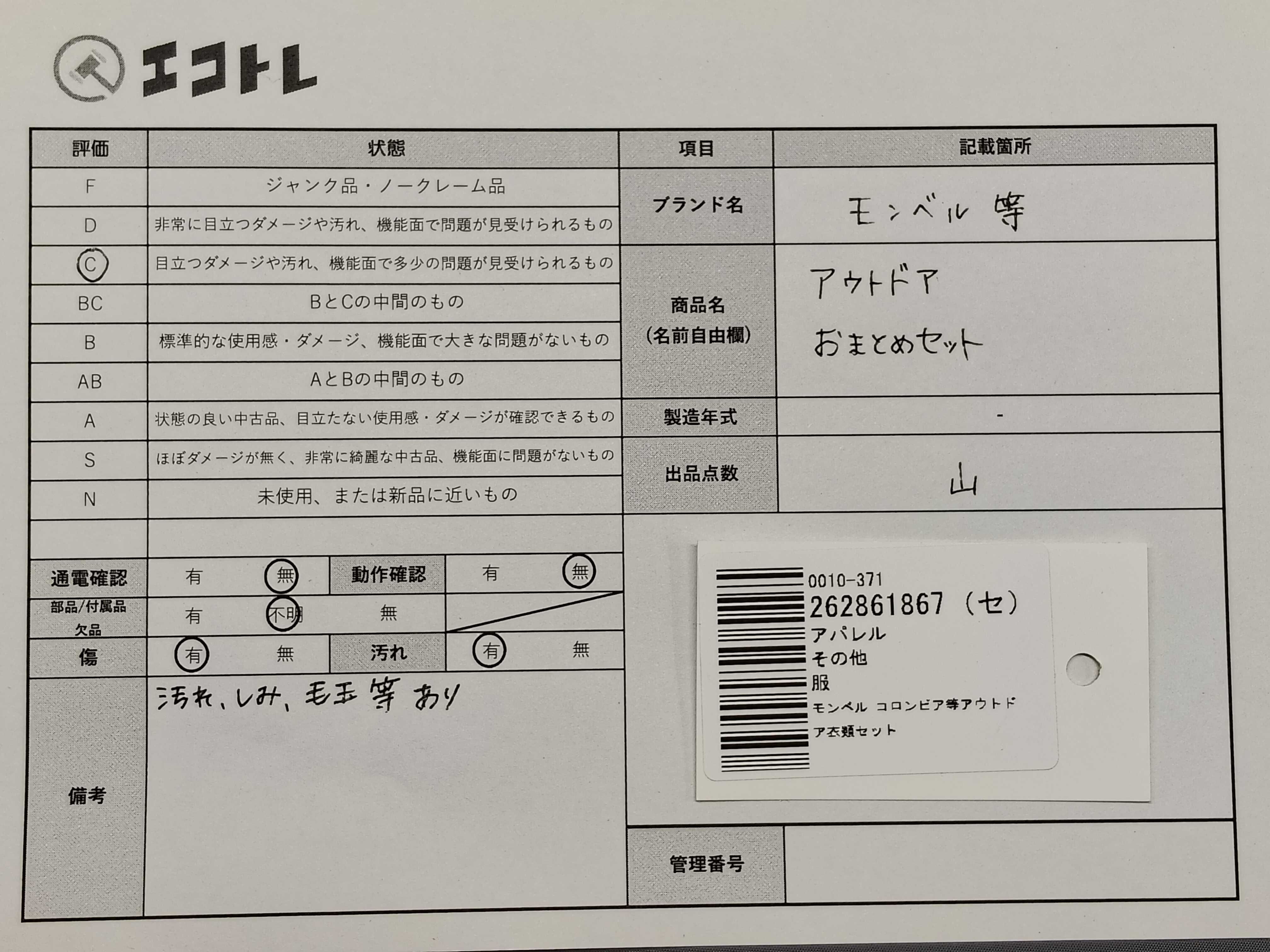 (11946_0264)▼モンベル/コロンビア等アウトドア衣類セット おまとめ その他アパレル