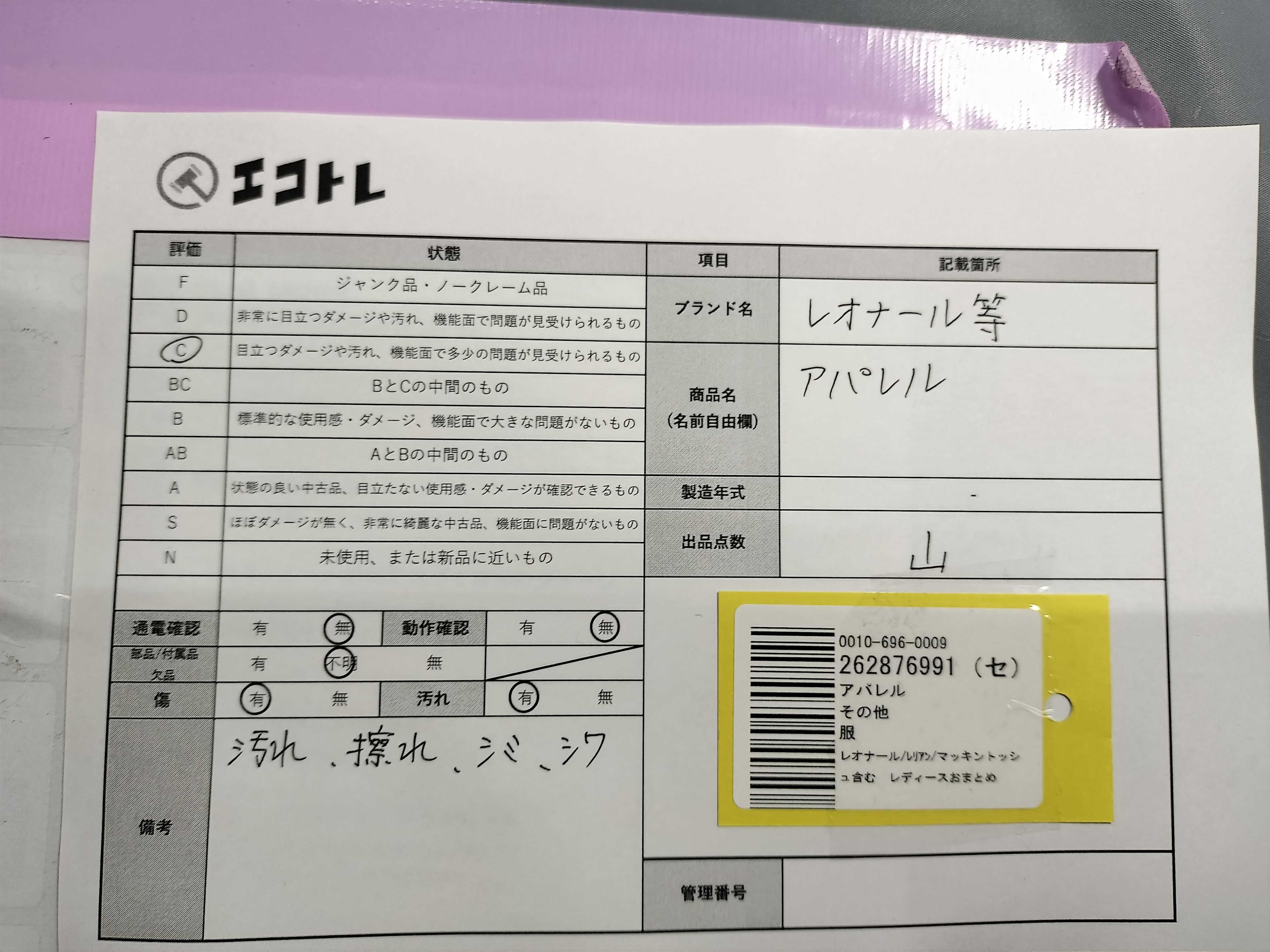 商品内容によって、JITBOXなどでの発送となる可能性がございます事ご理解下さい。年式などの商品情報詳細は写真にてご確認願います。※ご入札の際はご利用規約をよくお読みになってからのご参加お願いします。","タイプライン": "", "カテゴリ": "アパレル", "形状コード": "その他アパレル", "付属品コード": "", "シリアル・シール・型番": ""