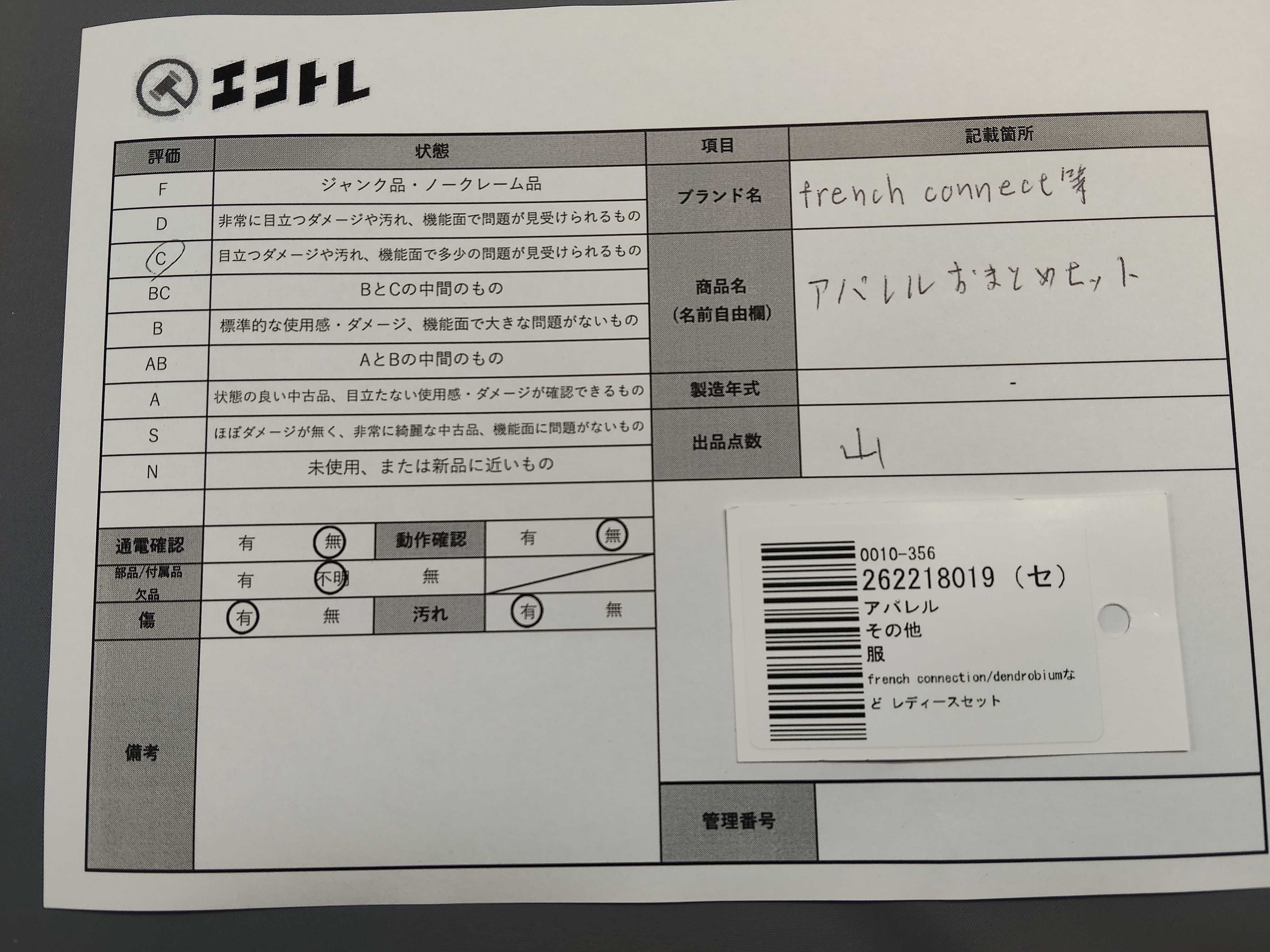 商品内容によって、JITBOXなどでの発送となる可能性がございます事ご理解下さい。年式などの商品情報詳細は写真にてご確認願います。※ご入札の際はご利用規約をよくお読みになってからのご参加お願いします。","タイプライン": "", "カテゴリ": "アパレル", "形状コード": "その他アパレル", "付属品コード": "", "シリアル・シール・型番": ""