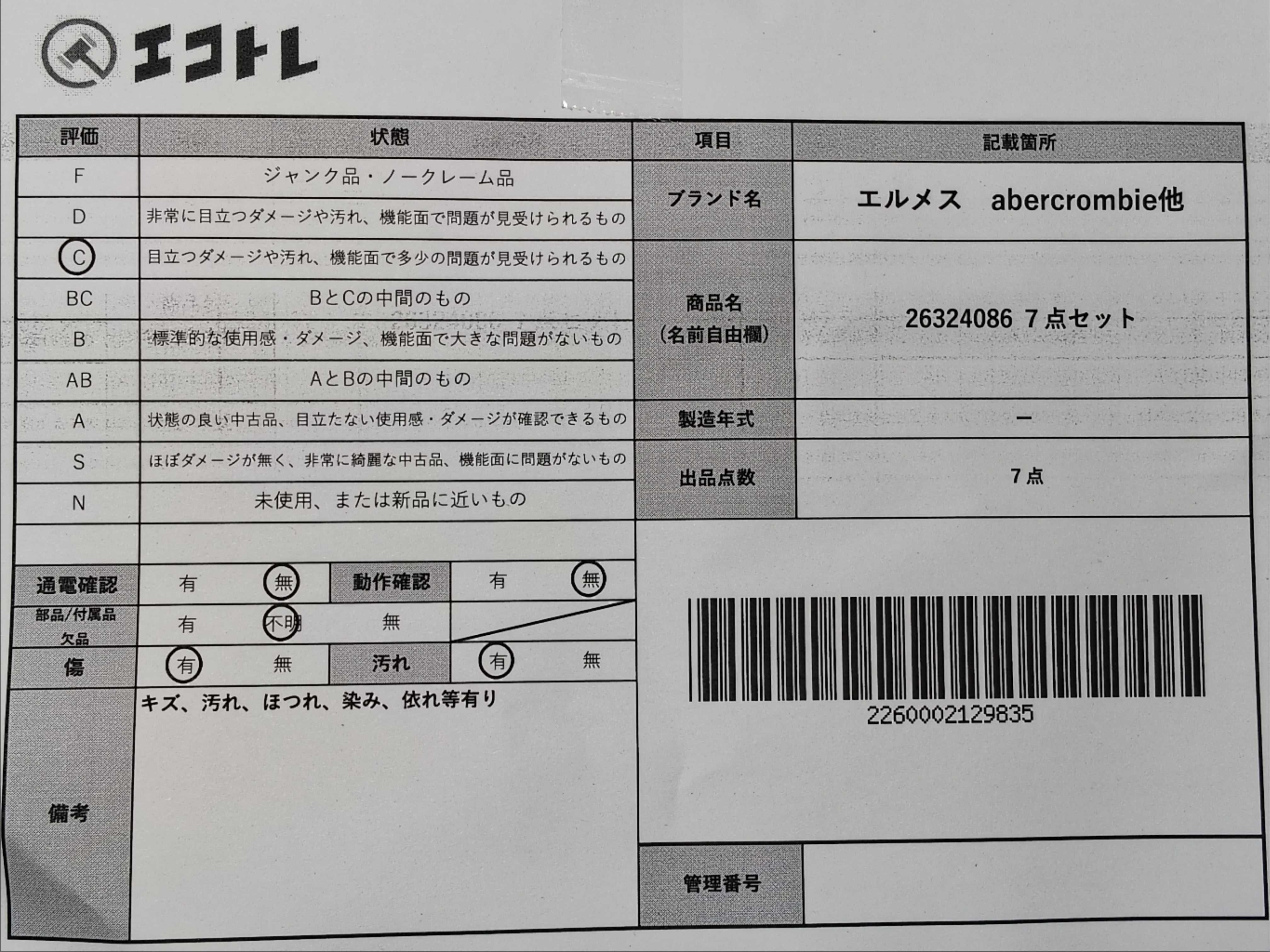 商品内容によって、JITBOXなどでの発送となる可能性がございます事ご理解下さい。年式などの商品情報詳細は写真にてご確認願います。※ご入札の際はご利用規約をよくお読みになってからのご参加お願いします。","タイプライン": "", "カテゴリ": "アパレル", "形状コード": "その他アパレル", "付属品コード": "", "シリアル・シール・型番": ""