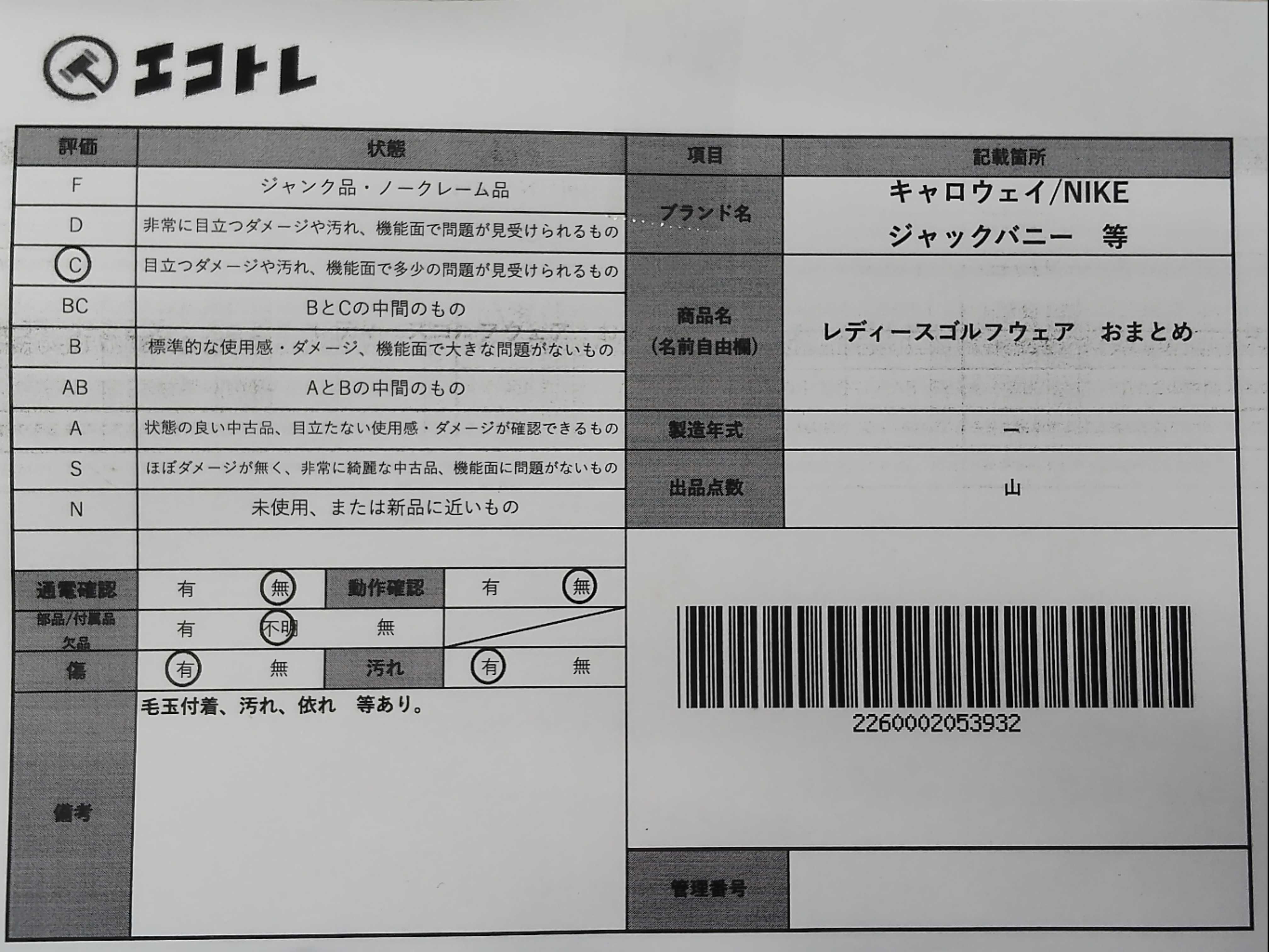 商品内容によって、JITBOXなどでの発送となる可能性がございます事ご理解下さい。年式などの商品情報詳細は写真にてご確認願います。※ご入札の際はご利用規約をよくお読みになってからのご参加お願いします。","タイプライン": "", "カテゴリ": "アパレル", "形状コード": "その他アパレル", "付属品コード": "", "シリアル・シール・型番": ""