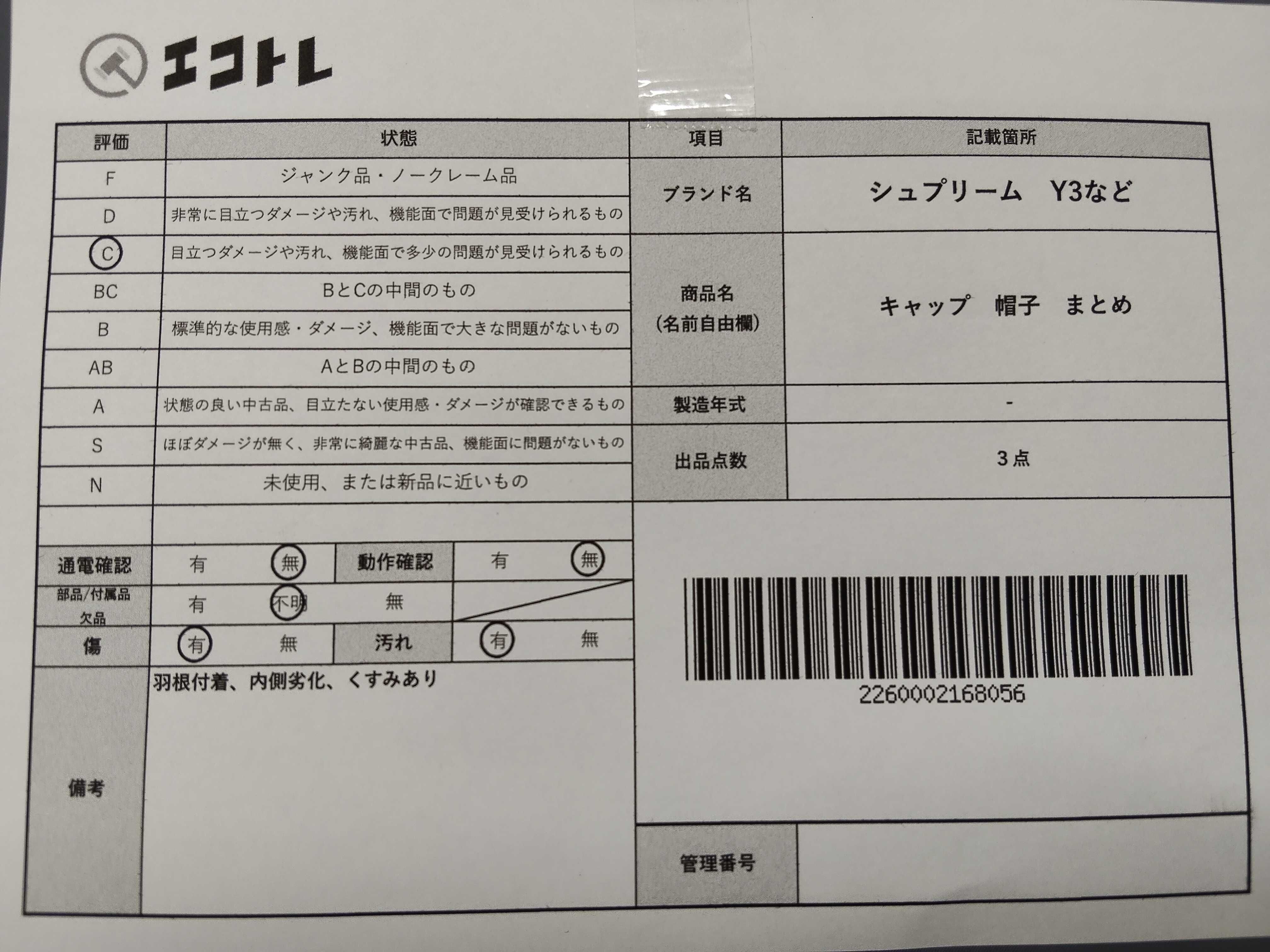 商品内容によって、JITBOXなどでの発送となる可能性がございます事ご理解下さい。年式などの商品情報詳細は写真にてご確認願います。※ご入札の際はご利用規約をよくお読みになってからのご参加お願いします。","タイプライン": "", "カテゴリ": "アパレル", "形状コード": "その他アパレル", "付属品コード": "", "シリアル・シール・型番": ""