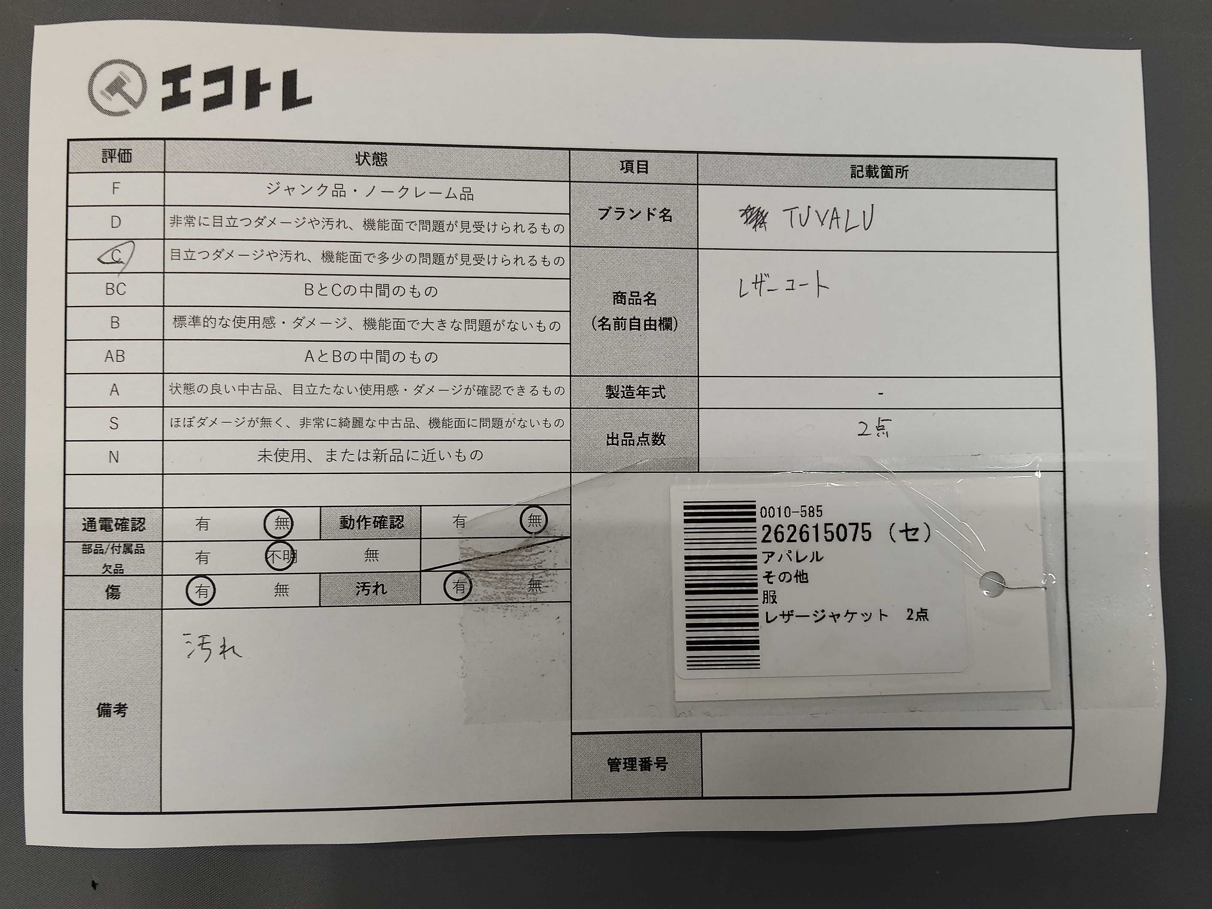 商品内容によって、JITBOXなどでの発送となる可能性がございます事ご理解下さい。年式などの商品情報詳細は写真にてご確認願います。※ご入札の際はご利用規約をよくお読みになってからのご参加お願いします。","タイプライン": "", "カテゴリ": "アパレル", "形状コード": "コート", "付属品コード": "", "シリアル・シール・型番": ""