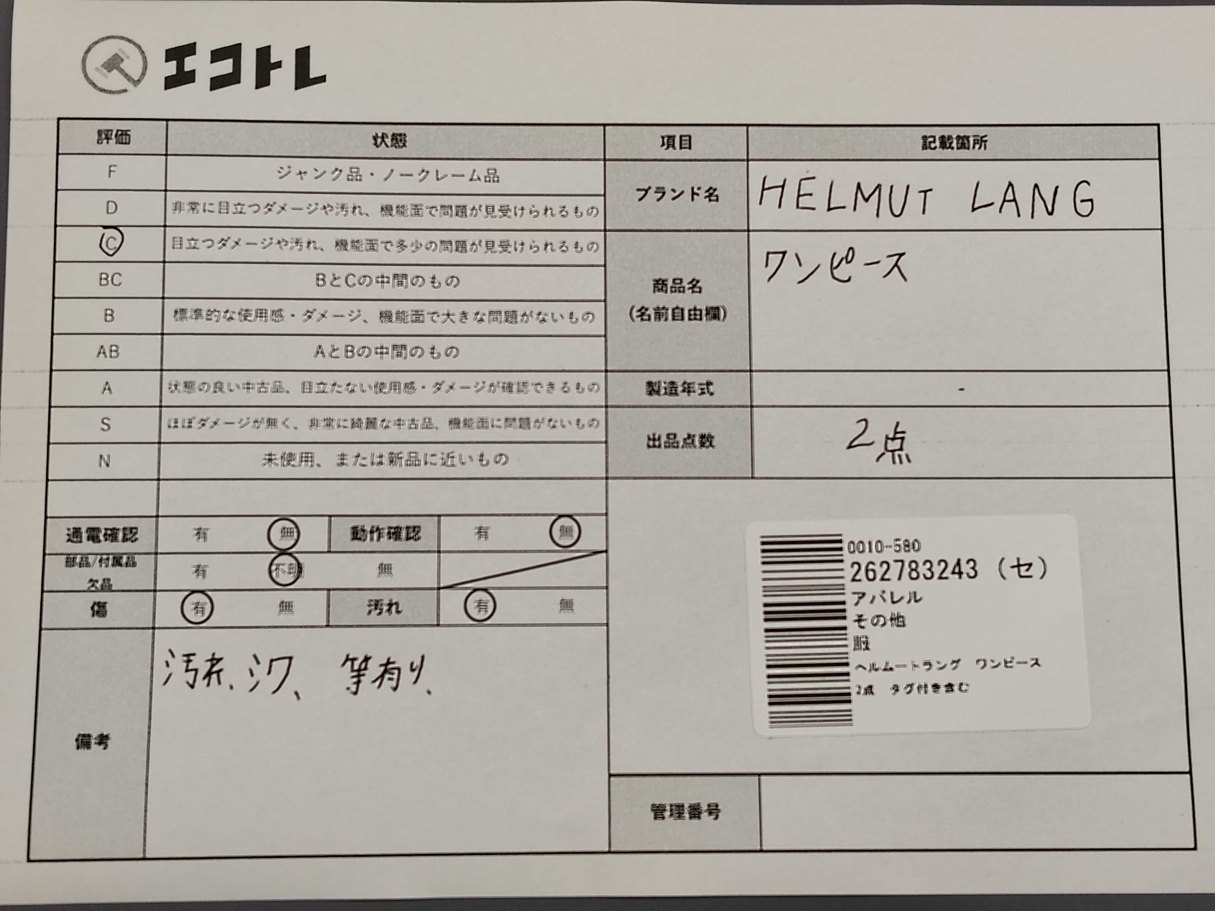 商品内容によって、JITBOXなどでの発送となる可能性がございます事ご理解下さい。年式などの商品情報詳細は写真にてご確認願います。※ご入札の際はご利用規約をよくお読みになってからのご参加お願いします。","タイプライン": "", "カテゴリ": "アパレル", "形状コード": "ワンピース", "付属品コード": "", "シリアル・シール・型番": ""