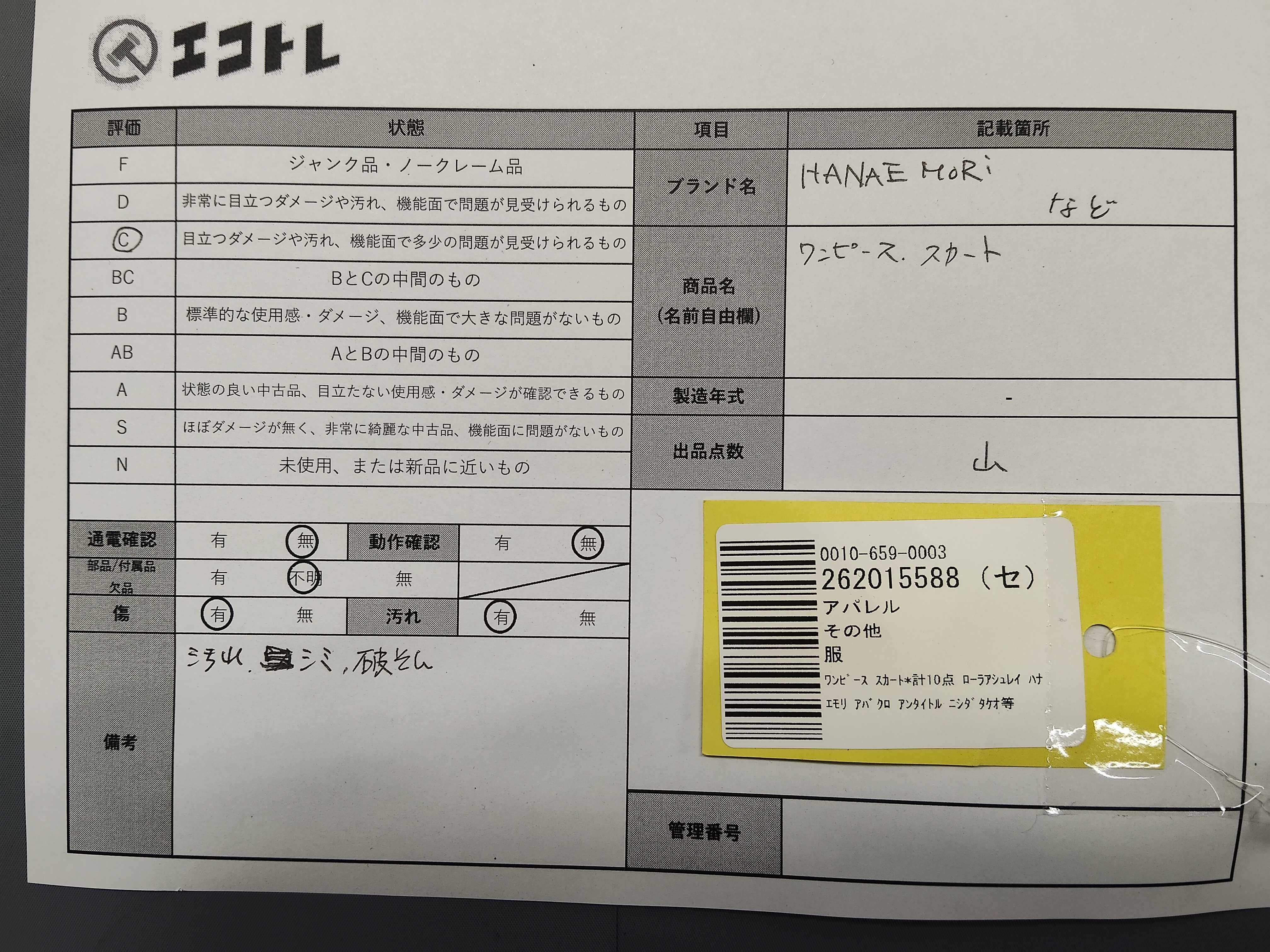 商品内容によって、JITBOXなどでの発送となる可能性がございます事ご理解下さい。年式などの商品情報詳細は写真にてご確認願います。※ご入札の際はご利用規約をよくお読みになってからのご参加お願いします。","タイプライン": "", "カテゴリ": "アパレル", "形状コード": "ワンピース", "付属品コード": "", "シリアル・シール・型番": ""