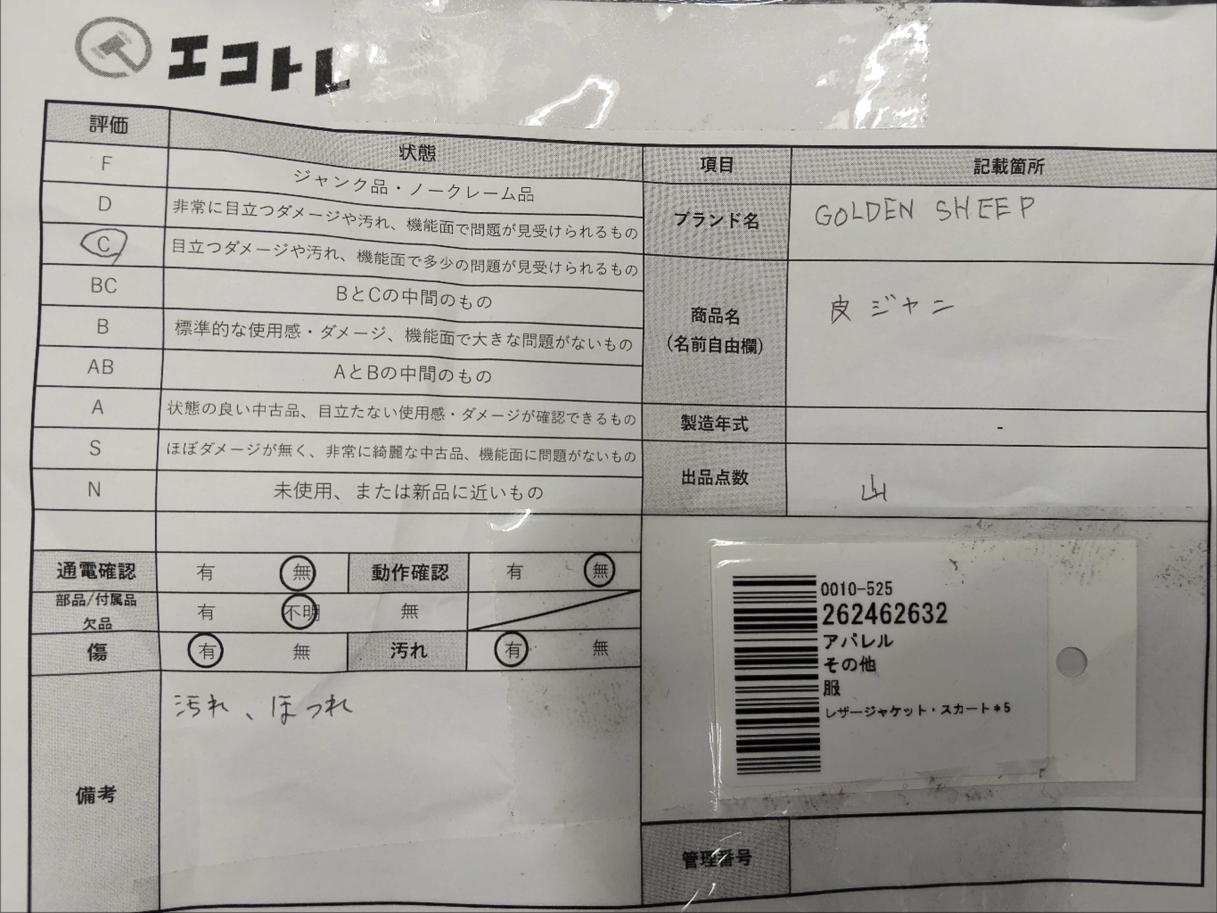 商品内容によって、JITBOXなどでの発送となる可能性がございます事ご理解下さい。年式などの商品情報詳細は写真にてご確認願います。※ご入札の際はご利用規約をよくお読みになってからのご参加お願いします。","タイプライン": "", "カテゴリ": "アパレル", "形状コード": "ジャケット", "付属品コード": "", "シリアル・シール・型番": ""