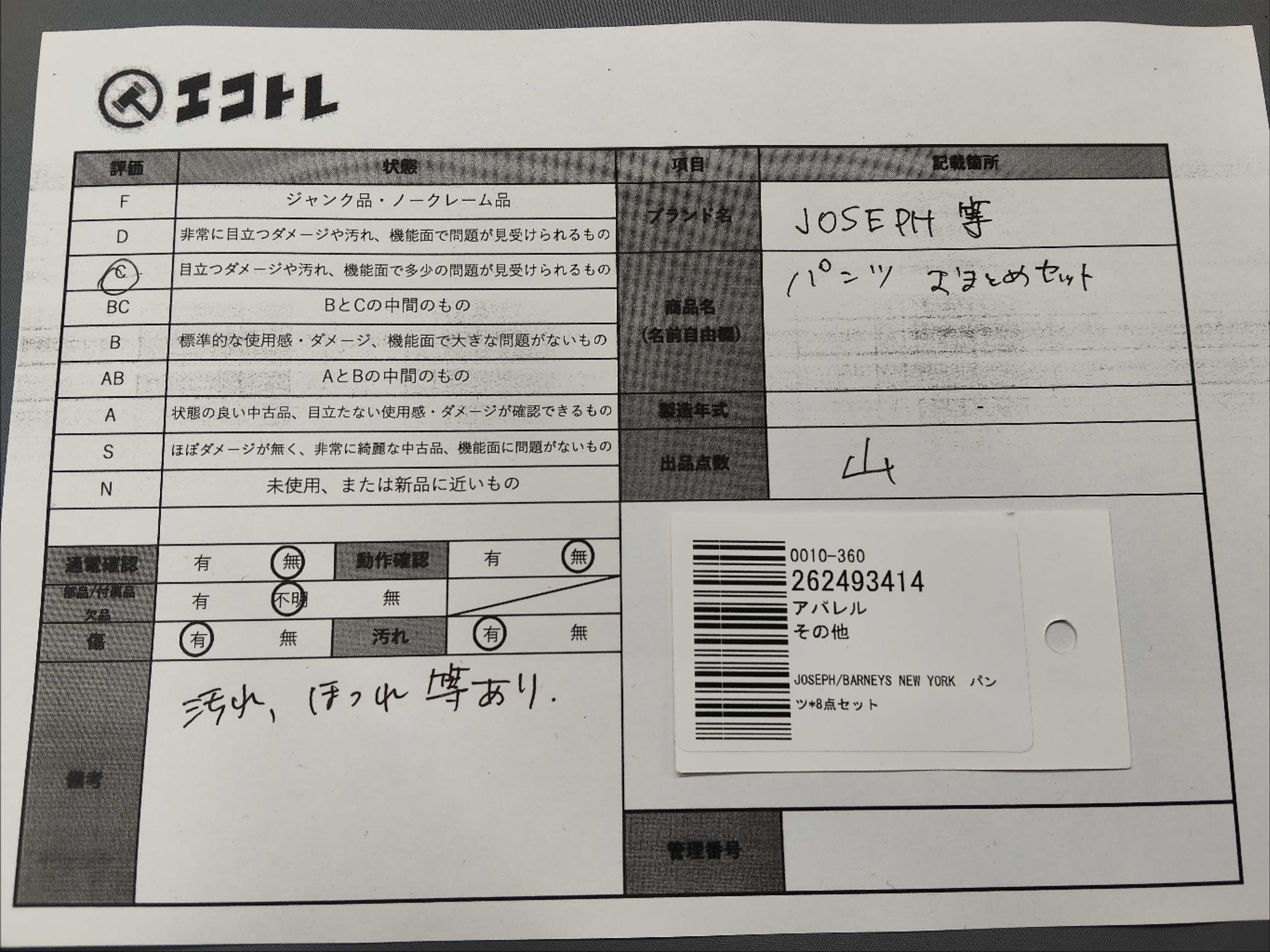 (11946_0364)▼JOSEPH/BARNEYS NEW YORK パンツ*8点セット おまとめ