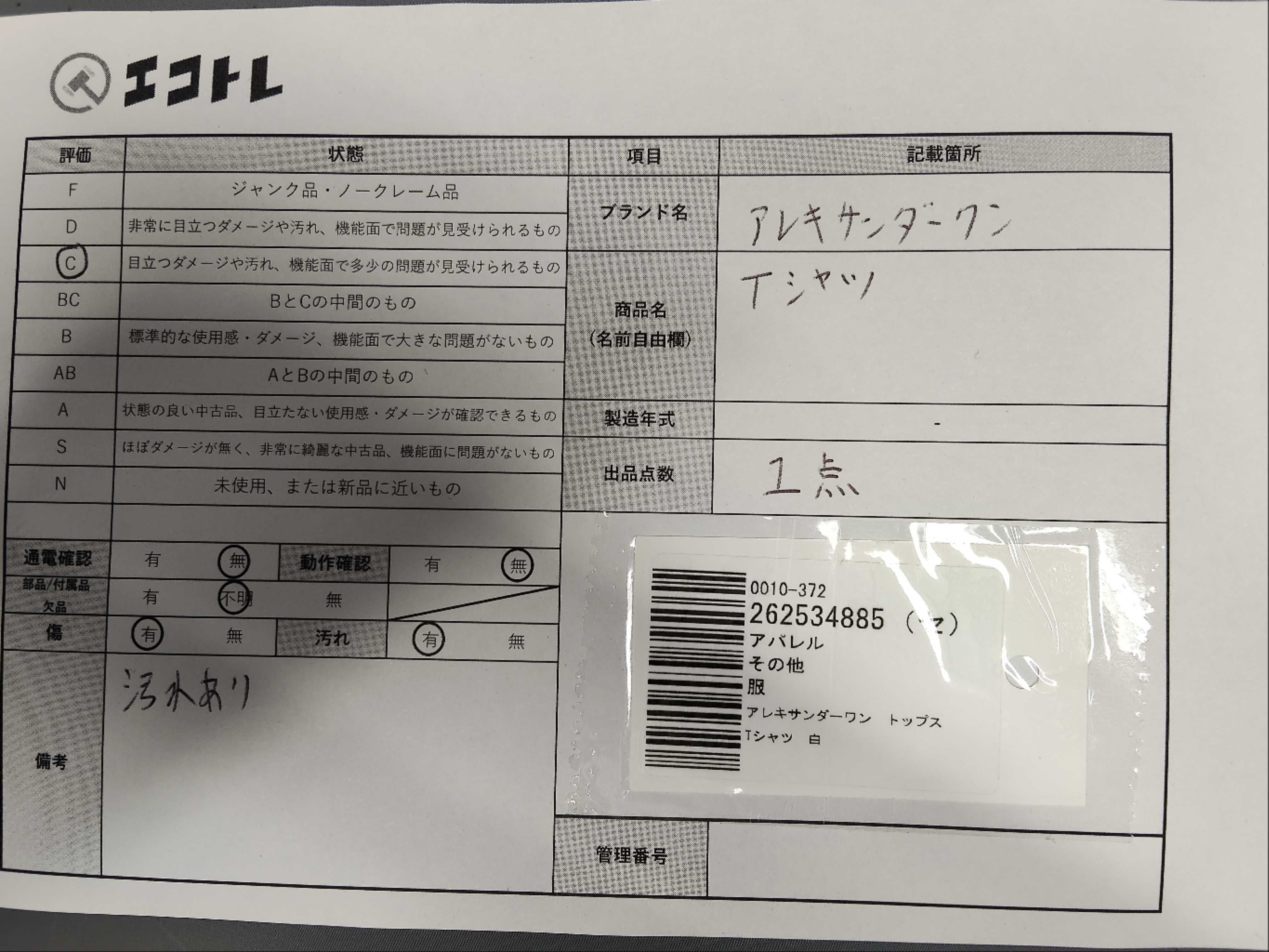 商品内容によって、JITBOXなどでの発送となる可能性がございます事ご理解下さい。年式などの商品情報詳細は写真にてご確認願います。※ご入札の際はご利用規約をよくお読みになってからのご参加お願いします。","タイプライン": "", "カテゴリ": "アパレル", "形状コード": "Tシャツ", "付属品コード": "", "シリアル・シール・型番": ""