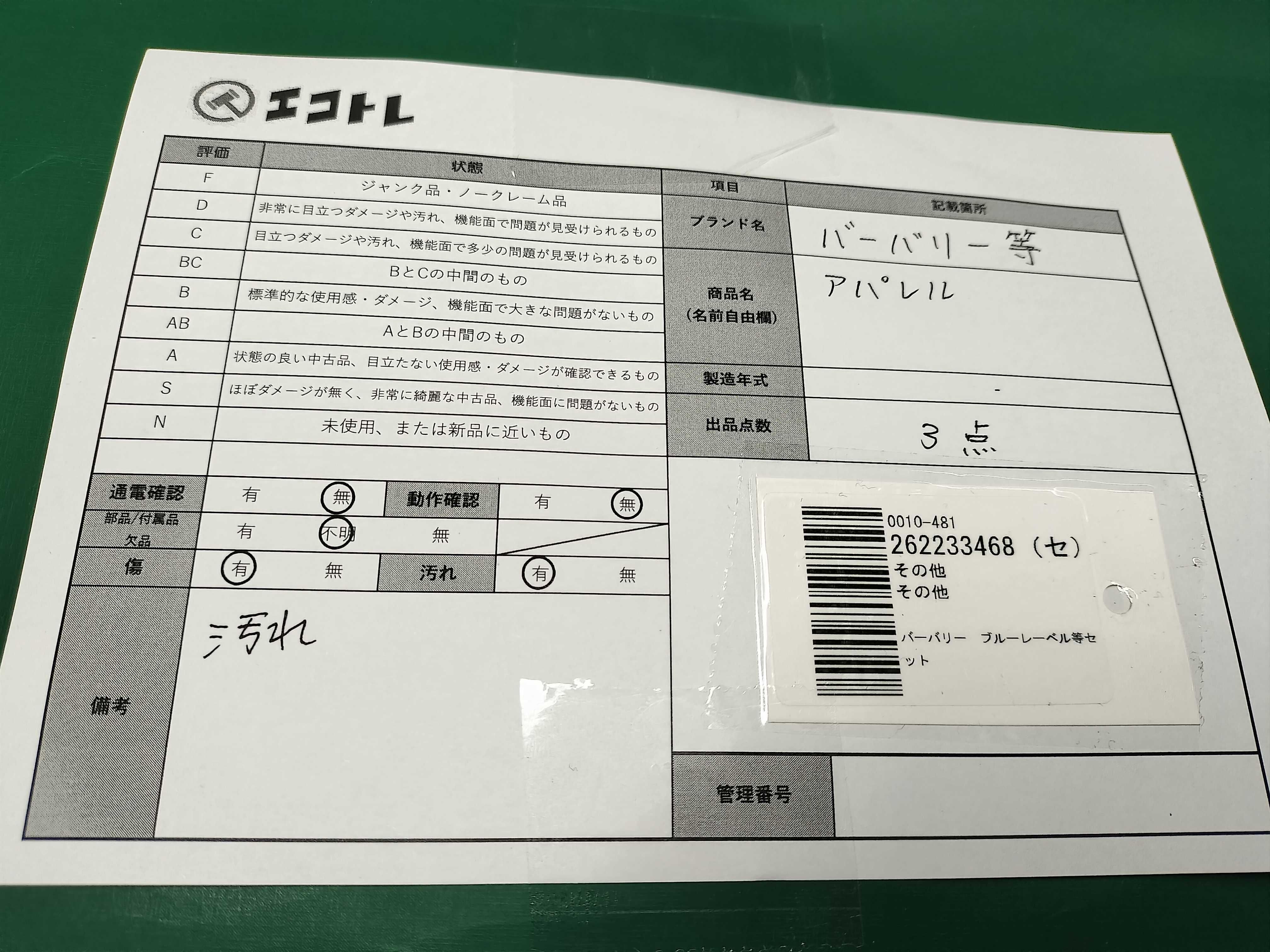 商品内容によって、JITBOXなどでの発送となる可能性がございます事ご理解下さい。年式などの商品情報詳細は写真にてご確認願います。※ご入札の際はご利用規約をよくお読みになってからのご参加お願いします。","タイプライン": "", "カテゴリ": "アパレル", "形状コード": "トップス", "付属品コード": "", "シリアル・シール・型番": ""