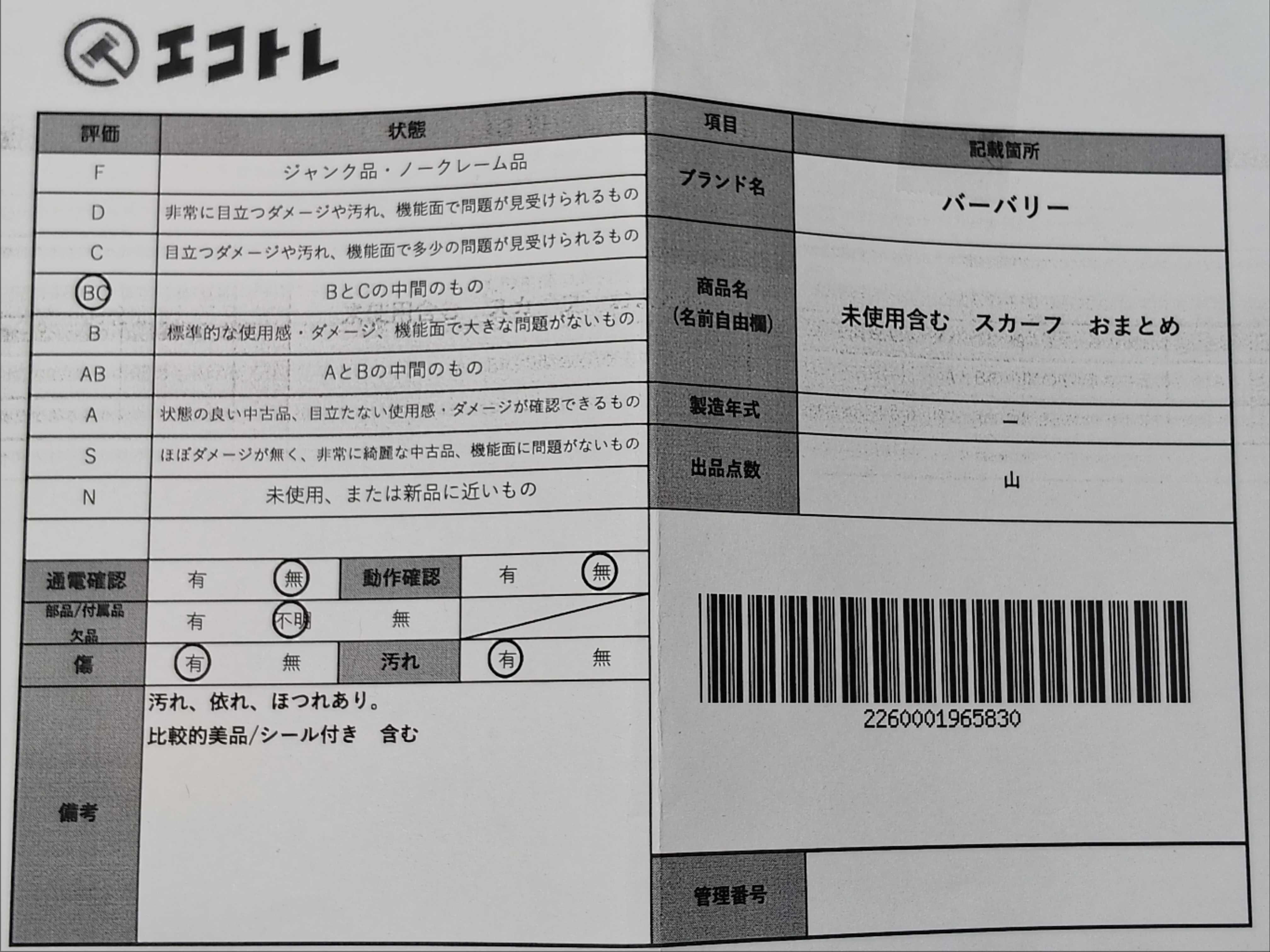 商品内容によって、JITBOXなどでの発送となる可能性がございます事ご理解下さい。年式などの商品情報詳細は写真にてご確認願います。※ご入札の際はご利用規約をよくお読みになってからのご参加お願いします。","タイプライン": "", "カテゴリ": "アパレル", "形状コード": "スカーフ", "付属品コード": "", "シリアル・シール・型番": ""