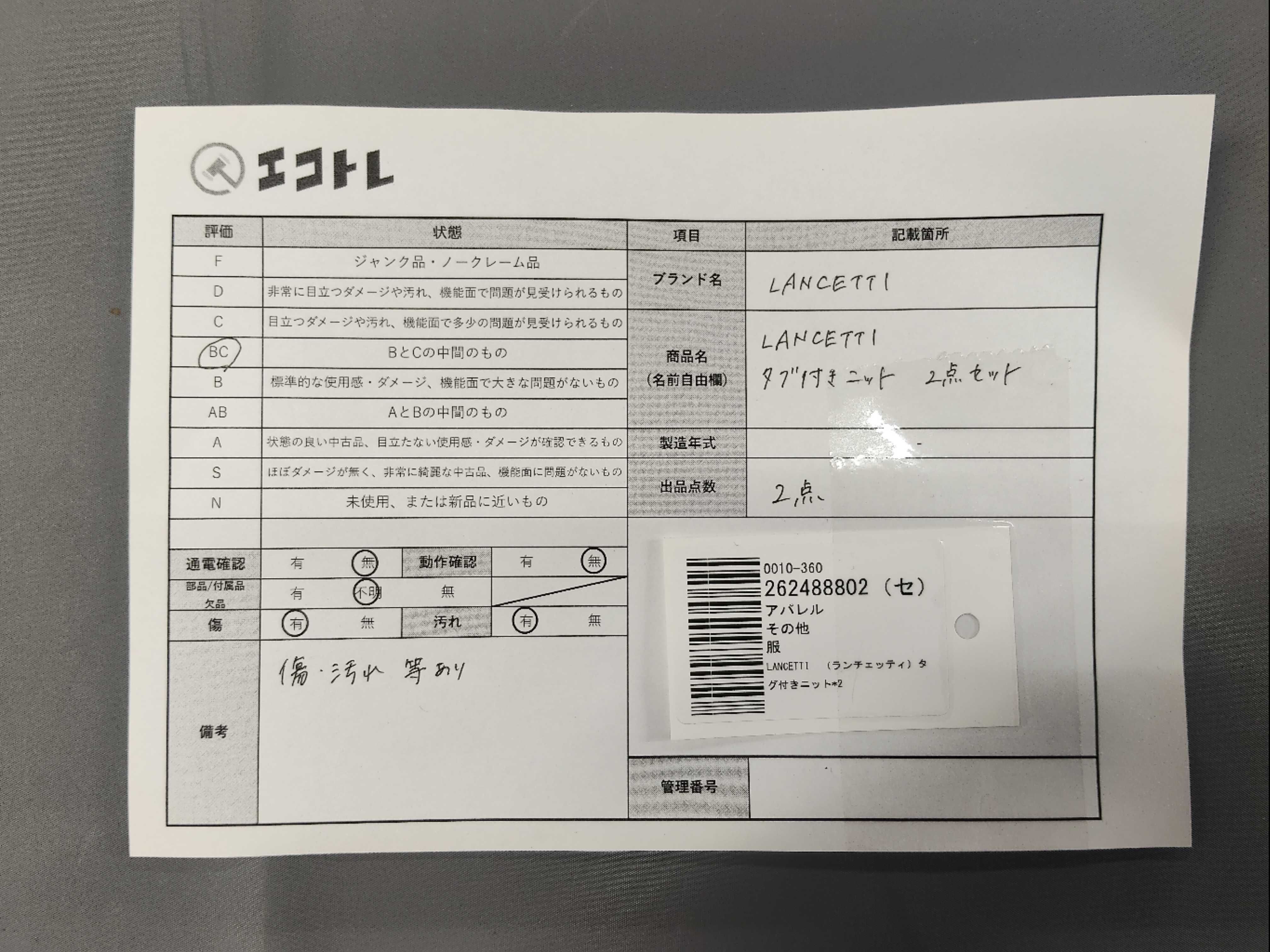 (11946_0421)▼LANCETTI (ランチェッティ)タグ付きニット*2 トップス