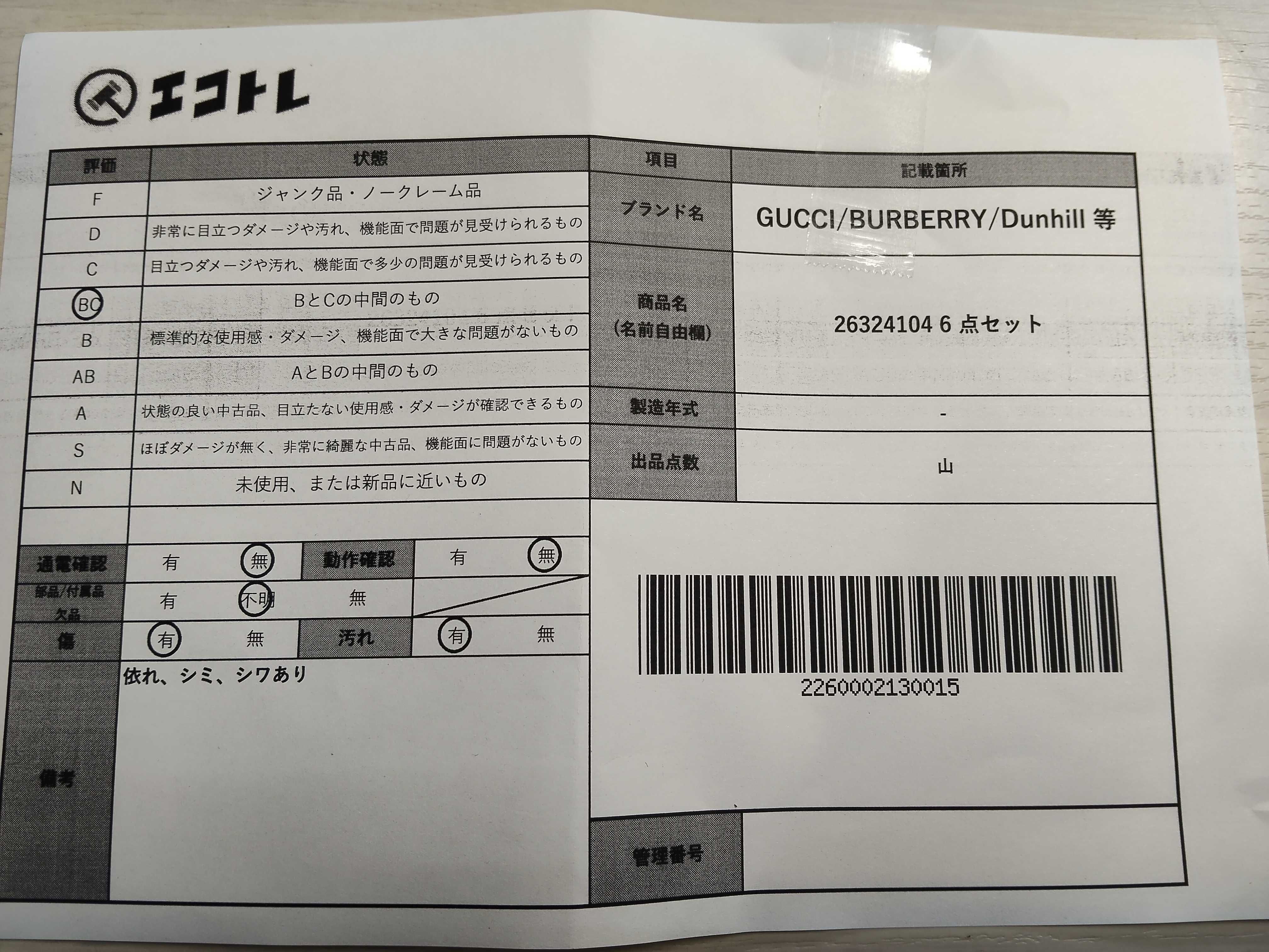 商品内容によって、JITBOXなどでの発送となる可能性がございます事ご理解下さい。年式などの商品情報詳細は写真にてご確認願います。※ご入札の際はご利用規約をよくお読みになってからのご参加お願いします。","タイプライン": "", "カテゴリ": "アパレル", "形状コード": "ネクタイ", "付属品コード": "", "シリアル・シール・型番": ""
