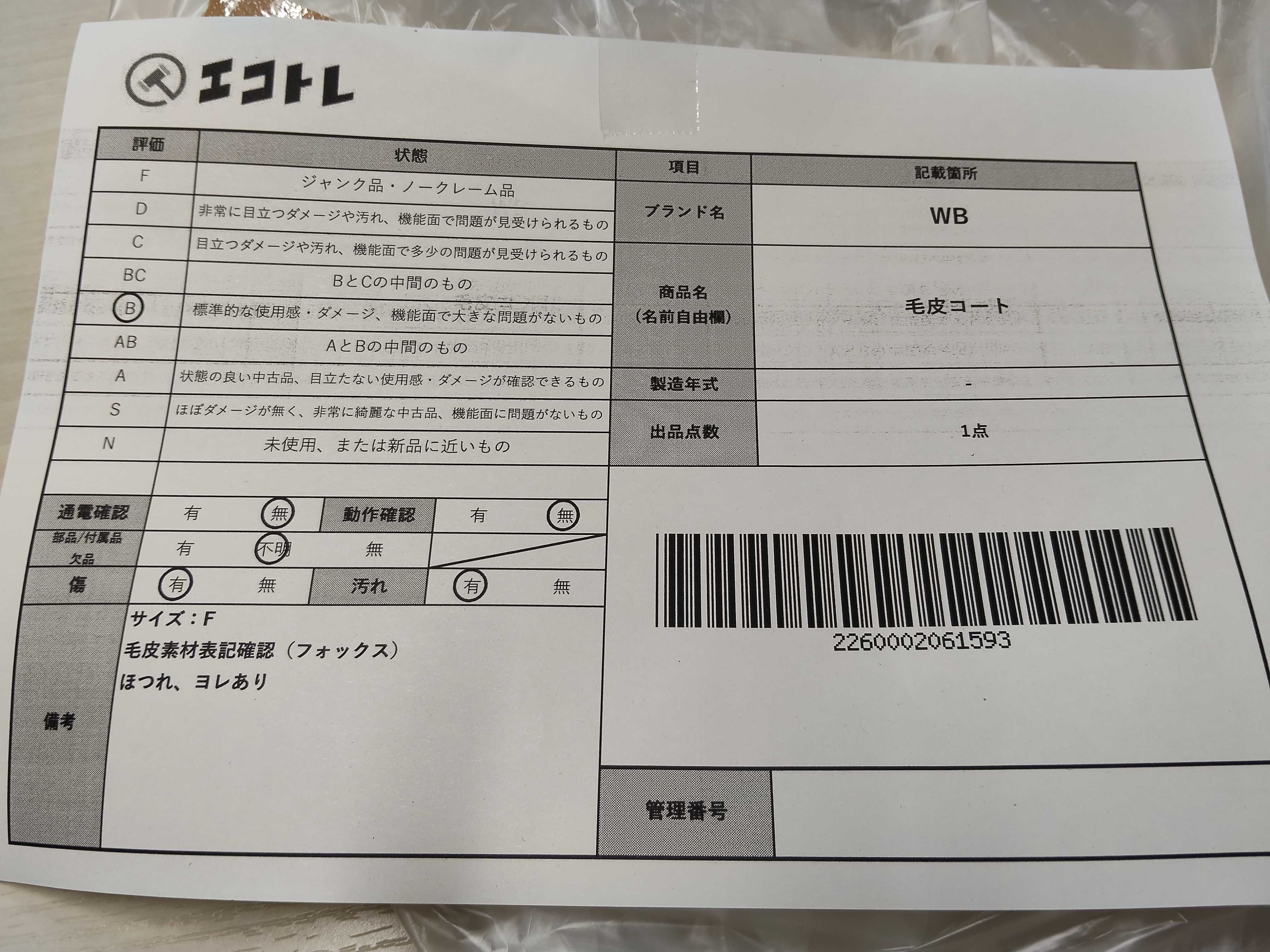 商品内容によって、JITBOXなどでの発送となる可能性がございます事ご理解下さい。年式などの商品情報詳細は写真にてご確認願います。※ご入札の際はご利用規約をよくお読みになってからのご参加お願いします。","タイプライン": "", "カテゴリ": "アパレル", "形状コード": "ジャケット", "付属品コード": "", "シリアル・シール・型番": ""