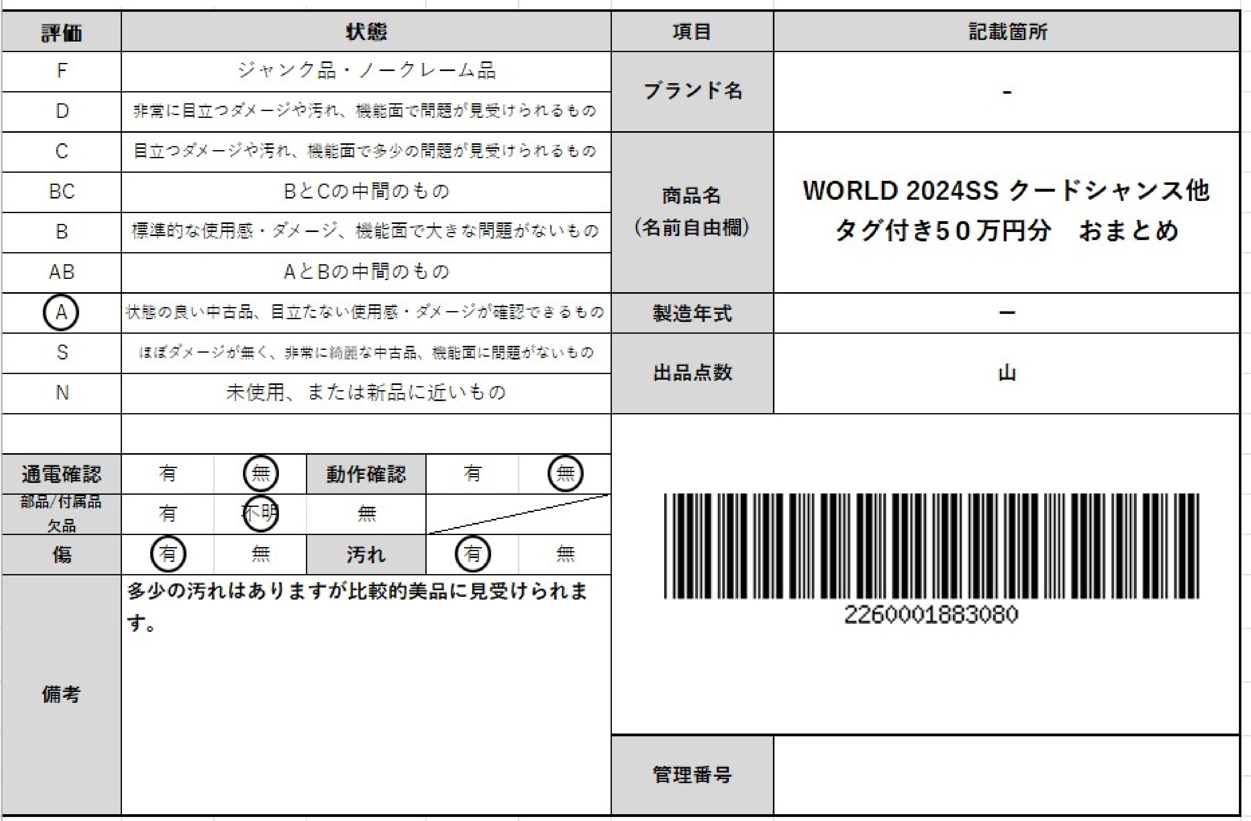 拍品等级